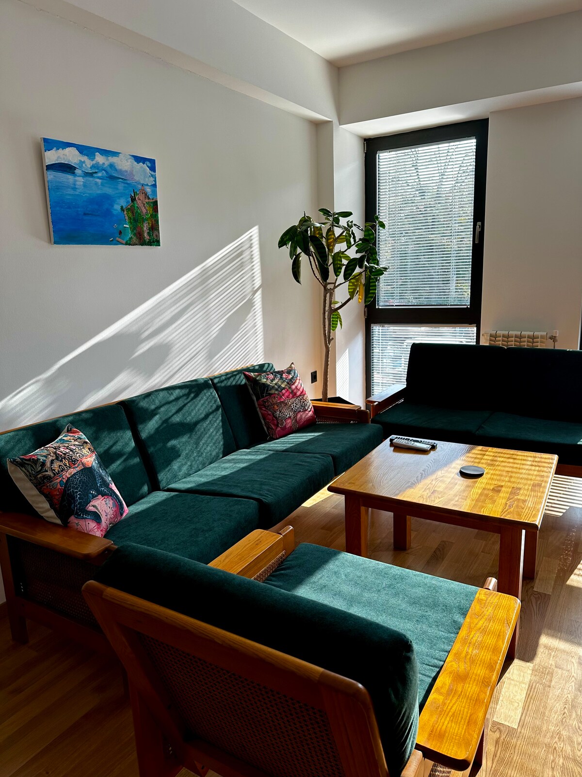 Apartment in the heart of Skopje. The Main City Square, the Old Bazar and many other city sights and tourist attractions are accessible on foot. Lot of bars and restaurants in the vicinity of the apartment. Its surrounding is oasis in the vibrant city, quiet and it has a view of courtyard with trees. The comfortable and pleasant atmosphere is enhanced with unique handmade wood details and furniture, designed and crafted by a graduated sculptor. You can park your car in a near garage.
