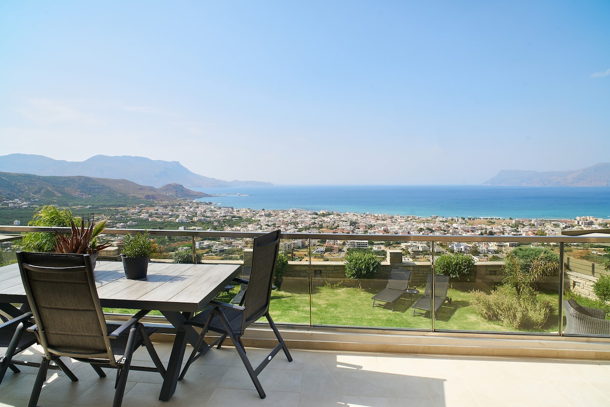 Μοναδικής αισθητικής βίλλα 220 τ.μ με πισίνα, στο ψηλότερο σημείο της πόλης με εκπληκτική θέα ολο το κόλπο της Κισσάμου ! Η βιλλα διαθέτει τρία υπνοδωμάτια εκ των οποίων το ενα διαθέτει μίνι wc και ντουλαποδωματιο! Το πολυ ευρύχωρο ισόγειο διαθέτει μια μοντερνα κουζίνα με ολα τα απαραίτητα, καθιστικο τραπεζαρία και σαλόνι! Ολοι οι χώροι εχουν μοναδικη θέα προς τον κόλπο! Η βιλλα διαθετει πανέμορφους εξωτερικούς χώρους, με σαλονια και τραπεζαρίες,οσο στο χωρο του γκαζον όσο και στις βεραντες!