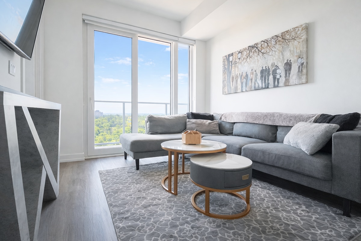 Welcome to your luxury retreat in a brand new Kitchener condo. This is a uniquely large 1-bedroom layout with premium furnishings— call it home today! 🛏️ KING bed + large sofa bed 🏢 Premium amenities: gym, spa, bowling, sauna, & much more 🚗 Free underground parking 📍 Walk to groceries, LRT, restaurants 🔐 Self check-in 🌇 Beautiful city views from the 22nd floor 🪟 Corner unit with floor-to-ceiling windows Our profile has a 4.9-star rating⭐— we have 145+ reviews that speak for themselves!