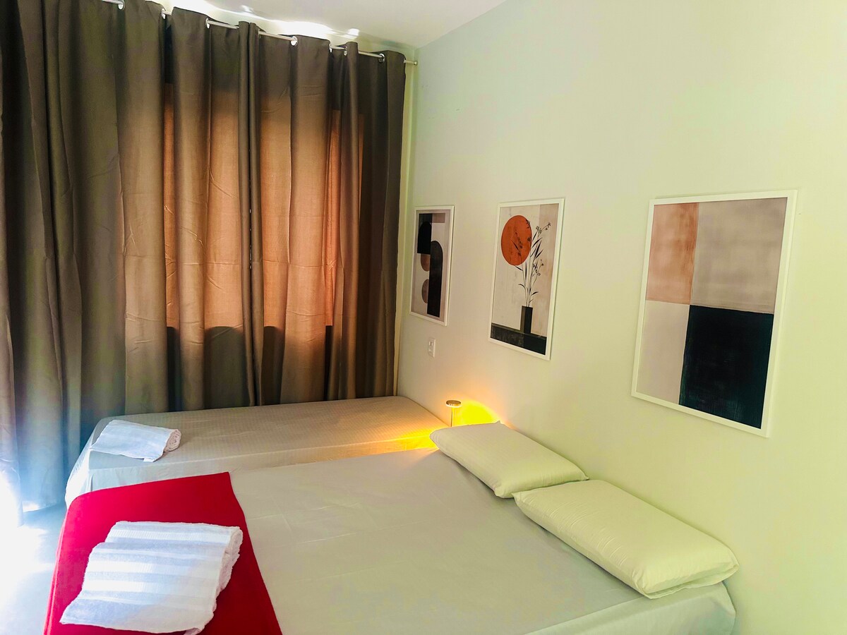 Բարդ լոֆթ Բելո Հորիզոնտի կենտրոնում ՝ օդորակիչով, ավտոկայանին, Կենտրոնական շուկային, Մինասցենտրոյին, Մունիցիպալ զբոսայգուն, ռեստորաններին, բարերին, հիվանդանոցներին և մի շարք զբոսաշրջային վայրերի մոտ: Wi - Fi, հեռուստացույց, պահարաններ և խոհանոց ՝ ձեր հարմարության համար ։ Հեշտ մուտք դեպի BH - ի բոլոր շրջանները: Մեր տարածքը հարմար է զույգերի, ընկերների խմբերի, ուսանողների և բիզնես ուղևորների համար: Մենք ԱՎՏՈՏՆԱԿ ՉՈՒՆԵՆՔ, բայց մոտակայքում ունենք գործընկեր կայանատեղի ՝ զեղչված ։ Ուրախ կլինենք ձեզ տեսնել որպես հյուրի ։