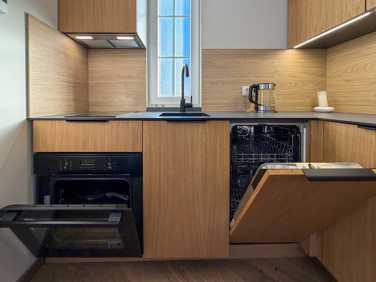 Բարի գալուստ մեր հարմարավետ ափամերձ ապաստարան, որը գտնվում է անխռով ծովից ընդամենը 150 մետր հեռավորության վրա ։ Այս մեկ ննջասենյակով բնակարանը, որը գտնվում է «Šventosios Vartai» մասնավոր և պաշտպանված համալիրում, կատարյալ հանգիստ է առաջարկում հանգստի և բնական գեղեցկության ձգտող զույգերի և փոքր ընտանիքների համար ։ - Ծովին մոտ - Լիովին կահավորված բնակարան ՝ հեռուստացույց/Wi - Fi - Անվճար կայանատեղի - Պահել և պաշտպանել թաղամասը