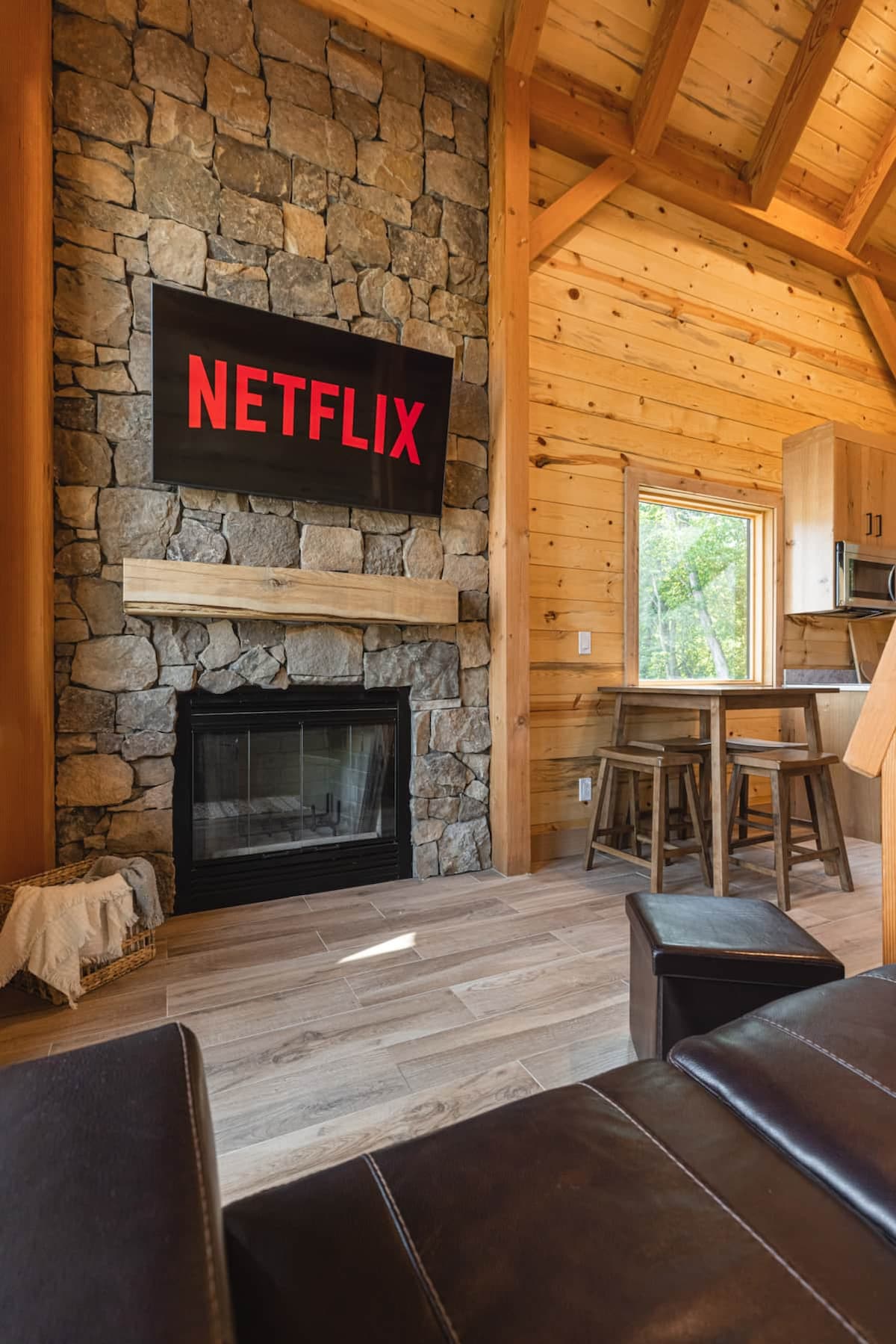 Discover peace in nature in this enchanting timber frame cabin surrounded by mature oak trees and peaceful lake views. 400 acres of hiking trails, two stocked lakes, and nearby attractions, this cabin will take your next vacation to a new level. Our two-bedroom cabin has the amenities you need including High Speed Internet and a wood burning fireplace. The Cabin comes equipped with a fully stocked kitchen. LEASHED PETS WELCOME