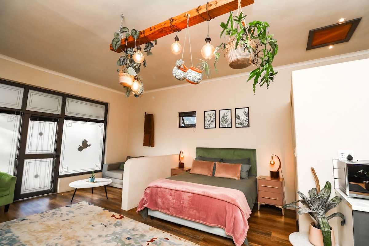 Entire private studio for 2 with Valley & Forest views. Quiet Knysna cul-de-sac. Wake to birdsong, coffee on the deck, then hit trails, lagoon and town (5 min drive; Uber available). Self-cater easily: full fridge/freezer, gas stove, microwave + air-fryer oven. Fast Wi-Fi + workspace. Charcoal BBQ. Pet-friendly (no large dogs). Rustic, handcrafted cabin finishes - safe, cosy, tranquil.