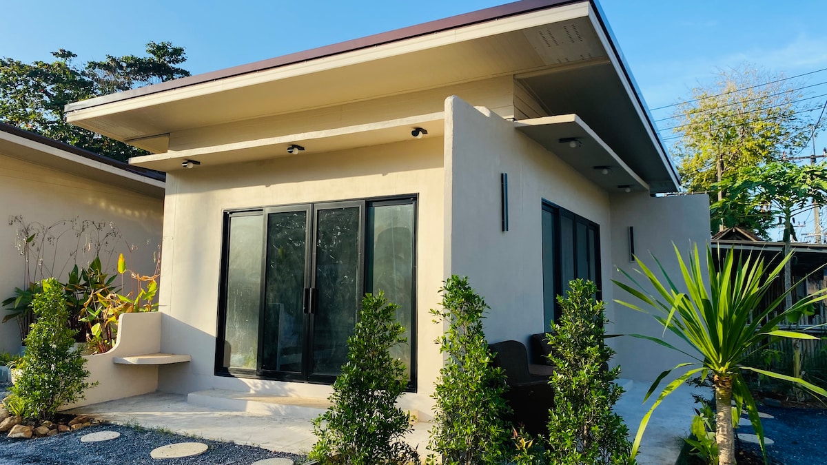 Thai cottage style room, size 34 square meters, private, has a kitchen, a king-size bedroom, a bathroom, a large balcony, suitable for both short and long term vacations, can accommodate 1-2 adults and small families. Fully equipped with amenities (air conditioning, refrigerator, hot water pot, microwave, plates, bowls, spoons, knives). Quiet, peaceful, natural, mixed with local customs, near restaurants, near convenience stores, near markets, near the beach, travel only 5 minutes to various pla