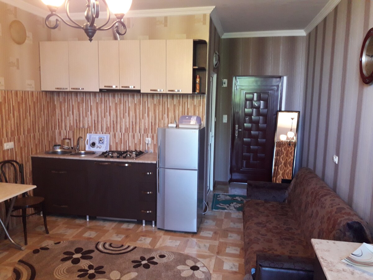 Эти апартаменты расположены в курортном городе Кобулети, в 26 км от Батуми. К услугам гостей балкон и бесплатный Wi-Fi на всей территории. В апартаментах имеются обеденная зона, мини-кухня и телевизор. Расстояние до ближайшего международного аэропорта в Батуми составляет 30 км. Мы говорим на вашем языке!