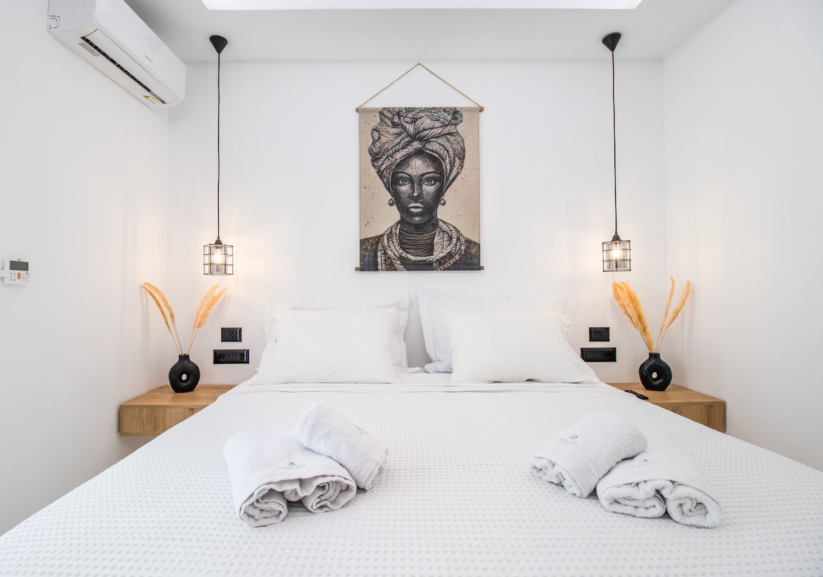 90 քմ շքեղ և նվազագույն լոֆթ, որը վերանորոգվել է 2019 թվականի մայիսին ։ Այն գտնվում է Հերակլիոնի նավահանգստի և դղյակի վերևում ՝ 2 առանձին պատշգամբներով, որոնցից բացվում է հրաշալի տեսարան դեպի ծով և այգի ։ Երկու մեծ ննջասենյակներն առաջարկում են King - size մահճակալներ ՝ էկո ալոե վերա ներքնակներով ՝ խորը քնի համար: Փայփայել ինքներդ է հսկայական բազմոցին հետեւում Netflix ժամը 58inches tv.kitchen լիովին հագեցած ժամանակակից զորակոչի & վառարան!Լվացքի և չորացման մեքենա ձեր հարմարավետության համար: Լոգասենյակը բացարձակ մինիմալիստական է և ընդարձակ:Էկո - Inverter Klima և անվճար կայանատեղի: