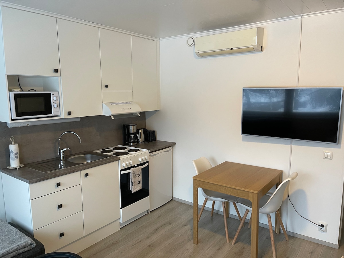 Մնացեք Հին քաղաքի մոտակայքում գտնվող մասնավոր բնակելի շենքում ։ Ծառայությունները, տեսարժան վայրերը, միջոցառումների այգին և երկաթուղային կայարանը բոլորը քայլելու հեռավորության վրա են ։ Ավտոմեքենաների կայանումը ճանապարհին անվճար է: Բնակարանում ՝ միջանցքով, խոհանոցիկով, kph - ով, ննջասենյակով, պահարանով, սառնարանով, սառնարանով, սրճեփով, թեյնիկով, տոստերով, միկրոալիքային վառարանով, էլեկտրական վառարանով: Թեյը և լուծվող սուրճը տրամադրվում են խոհանոցում: Բակում դրսում մի շուն կա ։