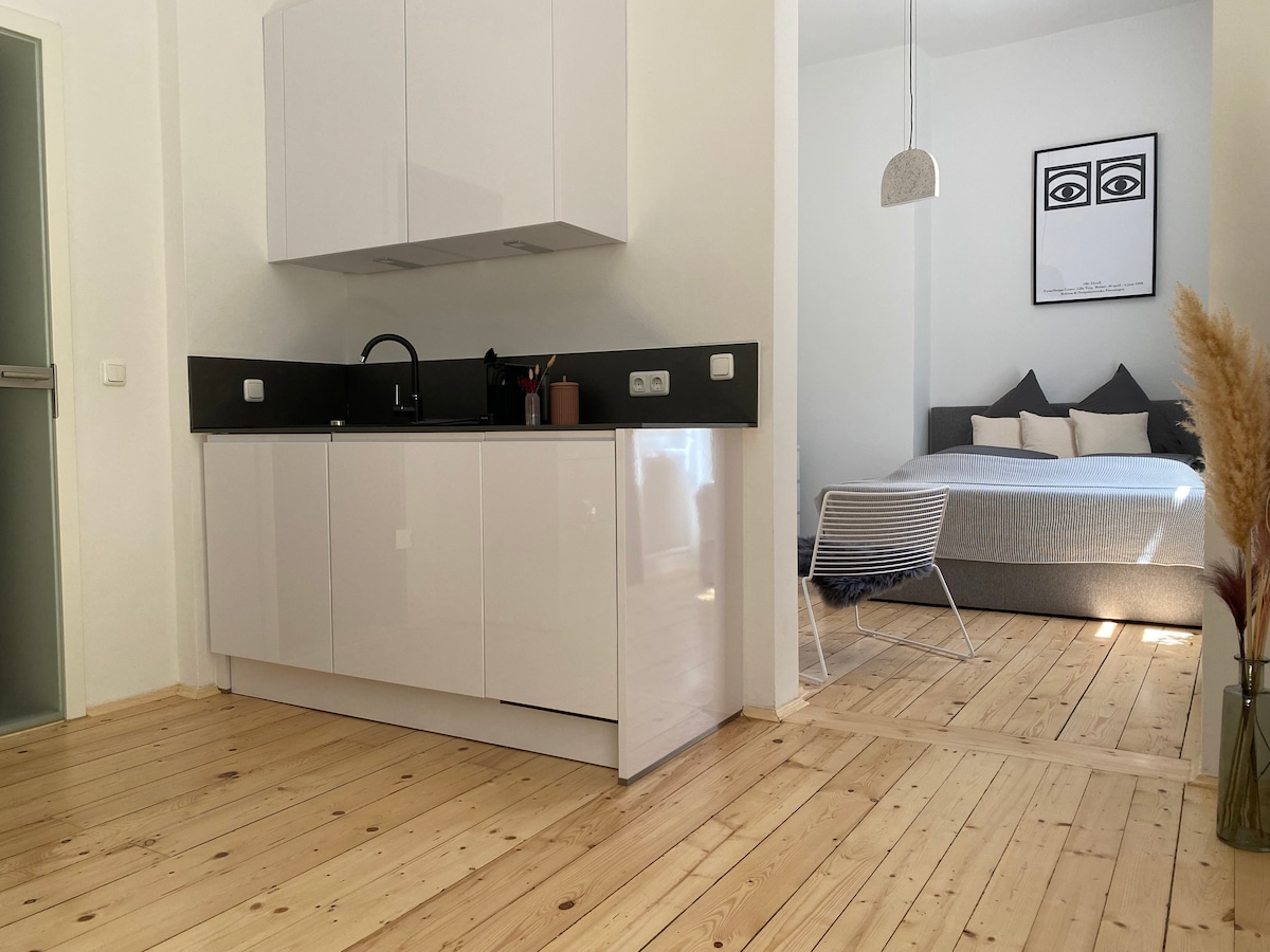 Նոր վերանորոգված 40 քմ մակերեսով առաջին հարկի կացարանը գտնվում է Մյունխենի մեջտեղում ՝ հիմնական երկաթուղային կայարանից ընդամենը մի քար հեռավորության վրա ։ Այստեղից կարող եք ոտքով հասնել քաղաքի բոլոր ուշագրավ տեսարժան վայրերը: Հենց մեջտեղում և, միևնույն ժամանակ, հանգիստ ՝ հետևի շենքի հիանալի տեղադրության պատճառով ։ Կացարանը նախատեսված է զույգերի, ընտանիքների կամ այլ փոքր խմբերի համար ։ Այն ունի մեկ կայանատեղ ստորգետնյա ավտոկայանատեղիում ։