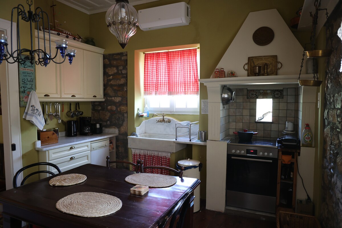The Oceanis cottage house sits on a hill overlooking the pelagic south of the village of Koumeika, a stone-built newly built farmhouse set in a 15-acre olive grove on top of a hill overlooking the southern Aegean Sea and the nearby islands. The house because of its surroundings is suitable for agrotourism.