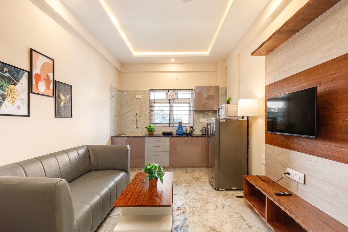 Բարի գալուստ մեր բոլորովին նոր, պրեմիում 1 - BHK բնակարան, որը իդեալական է հիանալի կենտրոնական վայրում հարմարավետություն և առանձնություն փնտրող զույգերի և ճանապարհորդների համար ։ Ննջասենյակում կա երկտեղանի մահճակալ ՝ փափուկ օրթոպեդիկ ներքնակով ՝ գիշերային հանգիստ քնելու համար ։ Հանգստացեք հարմարավետ հյուրասենյակում ՝ Սմարթ հեռուստացույցով, կայծակնային արագությամբ Wi - Fi - ով և խոհանոցի բաց տարածքով ։ Հասանելի է լոգասենյակի հիմնական պարագաներով լի գերմաքուր լոգասենյակ ։ Լիովին կահավորված խոհանոցը ներառում է բարձրորակ կենցաղային տեխնիկա և սպասք ձեր խոհարարական արկածների համար:
