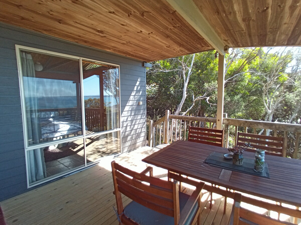 Spindrift Cottage is cosy and sheltered with a covered deck offering great water views across to Wilsons Promontory plus easy beach access onto the magical Waratah Bay beach with its fascinating rock pools and caves to explore. The cottage can sleep five with one bedroom plus a curtained area with a bunk with double and single bed configuration as the photos show. Linen supplied.