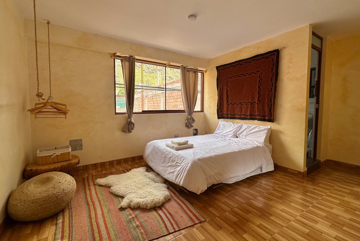 Գեղեցիկ երկսենյականոց բնակարան ՝ երկու զուգարանով, տաք ջրով ցնցուղներ ՝ խոհանոցի ծորակներով, գերարագ ինտերնետ, ժամանակակից և լիովին կահավորված խոհանոց, այգի և տեռաս Պիսակի Սրբազան հովտի սրտում ՝ գլխավոր հրապարակից երկու թաղամաս հեռավորության վրա, ռեստորաններ, խանութներ և շրջակա շուկա ։ Մենք ունենք ժամանակակից, 6 արագությամբ բոլոր հարմարություններով մոտոցիկլետ ՝ մեր հյուրերի համար հատուկ գնով ։ Մասնավոր տաքսի ծառայություն օդանավակայանից մինչև ամբողջ սուրբ հովիտ ։ մենք սուպերտանտեր ենք Պիսակը, Կալկան և Ուրուբամբան ։