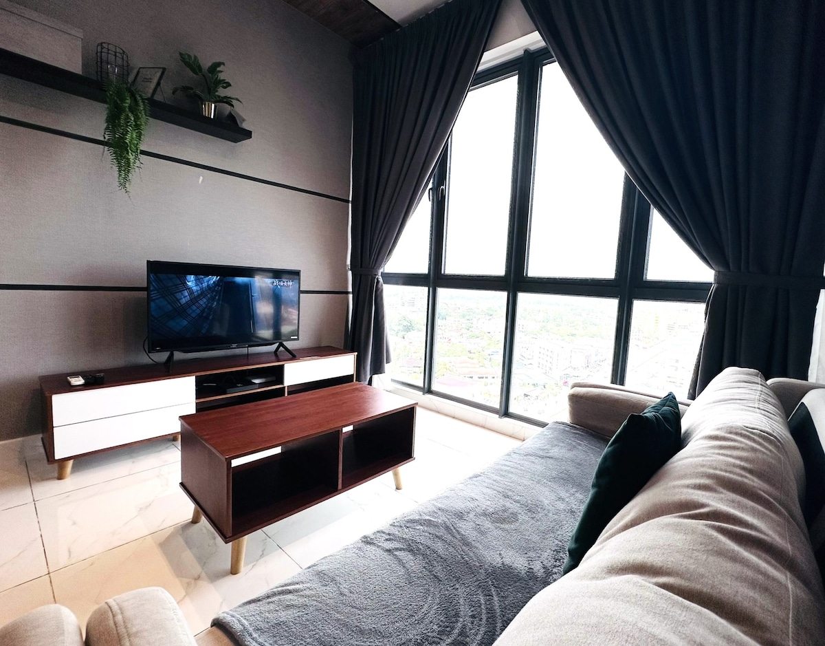 Stay in the heart of Kota Bharu and enjoy ultimate convenience. Located just a short walk to KB Mall and UTC, you can shop, dine, and access essentials without needing a car. Surrounded by plenty of food options. This fully furnished, air-conditioned unit features a queen bed, sofa bed, 43” Smart TV, washing machine, fridge, iron, balcony, and 100Mbps high-speed fibre internet—perfect for work or staycation.