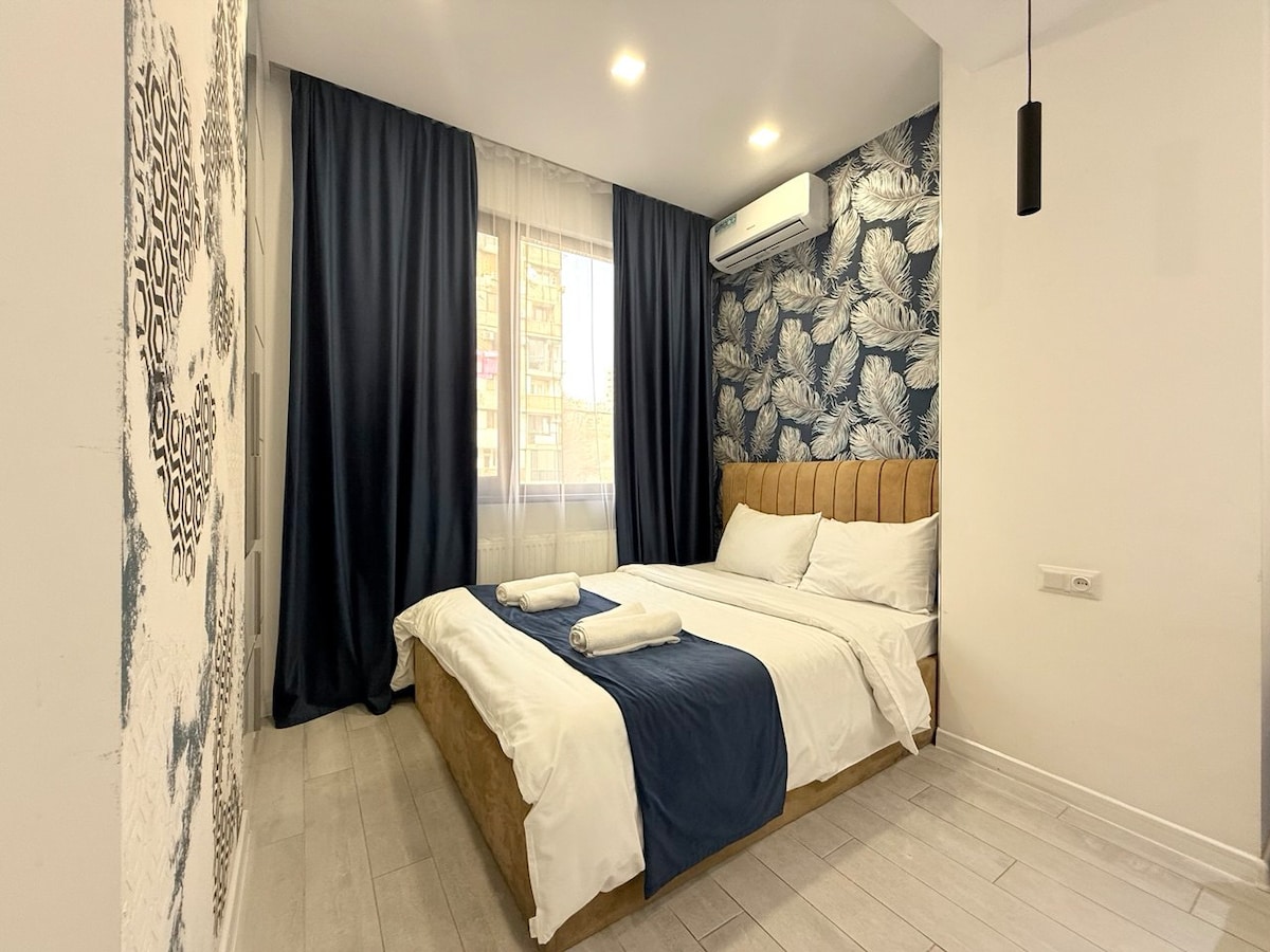 Վայելեք նորաոճ փորձառությունը կենտրոնում գտնվող այս մեկ սենյականոց բնակարանում,որը նախատեսված է 4 հյուրի համար: Հանգստի վայր և հարմարավետորեն հասանելի է այն ամենին, ինչ անհրաժեշտ է երկար կամ կարճ ուղևորության համար: Սենյակը և ճաշասենյակը ՝ թախտով, խոհանոցը ՝ կենցաղային տեխնիկայով, միկրոալիքային վառարանով և սրճեփով, ննջասենյակը ՝ երկտեղանի մահճակալով, լոգասենյակով և պատշգամբով: Ձեր առողջությունը մեր առաջնահերթությունն է ։ Մեր տունը հետևում է մանրազնին մաքրման ուղեցույցին ՝ պրոֆեսիոնալ մաքրման և ռազմավարական ախտահանման միջոցով ։ Վայելեք ձեր այցը ։
