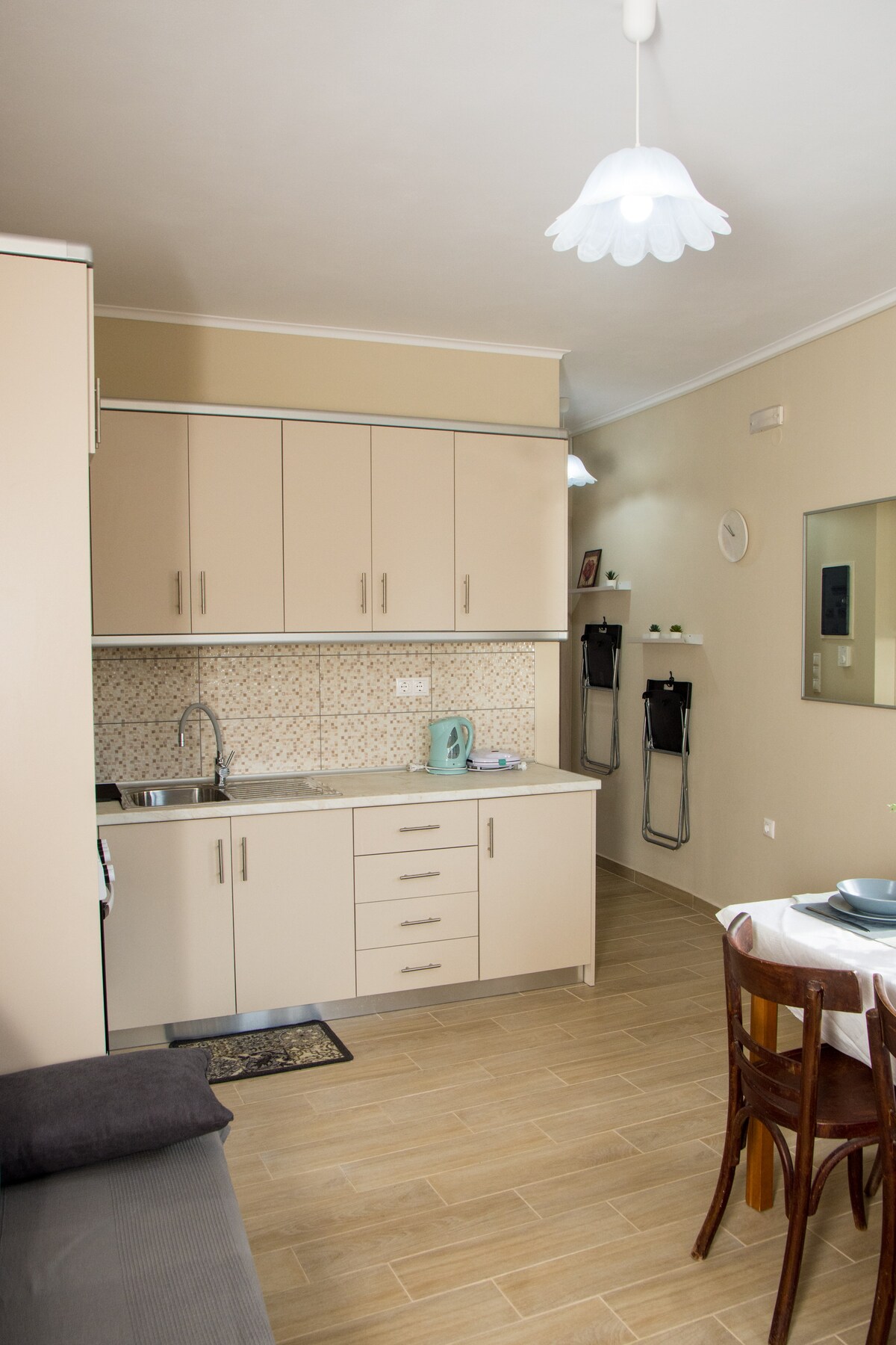 A fully furnished double decked small house with a shared garden and private parking. It is located in Varos, a small traditional village in the middle of the island, which makes it a perfect starting point for exploration! Some of the best sandy beaches are close. Keros beach, which is considered the safest beach for kitesurfing in Europe, is just 15 minutes away by car.