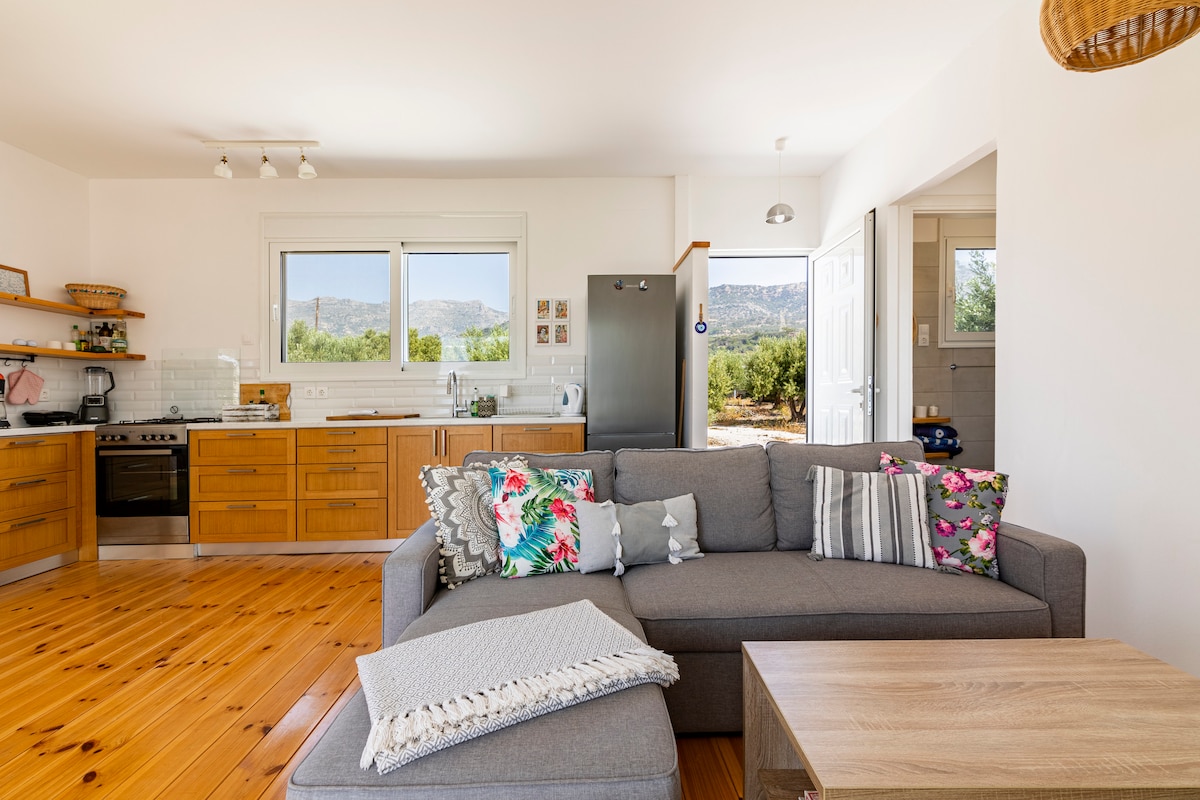 Հաճելի կացարան բնակելի համալիրում: Վերանորոգված (2018) բնակարանը խեղդվել է ձիթապտղի ծառերով, կիտրոնի ծառերով, քարոբ ծառերով, նոճիով, բույրերով և թռչունների թիզակներով: Բավականին, բոհեմական, առանձնահատուկ բույն ծովի կողքին զույգերի, ընտանիքների և նույնիսկ մի խումբ ընկերների համար, ովքեր փնտրում են բնության երանելիությունը, գտնվում է Ագիոս Ռիչաոսից 5 կմ հեռավորության վրա: Փորձեք հաղթահարել ներքին և բնական միջավայրերի միջև եղած բաժանարար գիծը և համադրել հունական ավանդույթները մոդեռնիզմի և հարմարավետության հետ:
