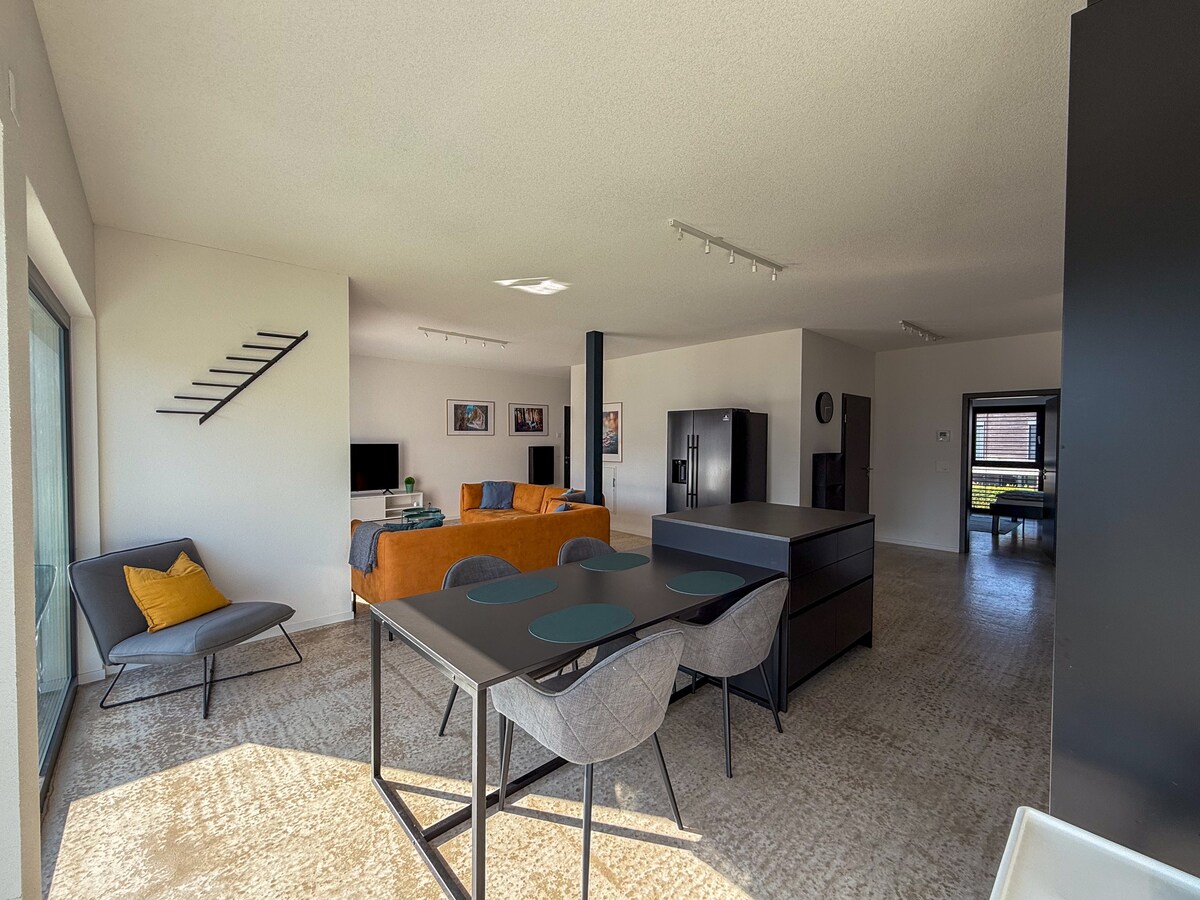 Վայելեք քայլելու հեռավորությունը դեպի Կոնստանց յուրահատուկ դուպլեքս բնակարանում: Գյուղական վայրերում և, միևնույն ժամանակ, կենտրոնական մասում ։ Լիճը, Լագոն և նաև հին քաղաքը, ինչպես նաև Կրյուզլինգերի բուլվարը կամ կարուսելը ոտքով րոպեների հեռավորության վրա են: Գնումներ. հնարավոր է ամեն օր մինչև ժամը 9 - ը: Շաբաթ օրը այլևս խցանումներ չկան Կոնստանցի կենտրոն այցելելու համար ։ Վայելեք (կարճ) արձակուրդն առանց սթրեսի ։ Եթե այցելեք նաև Շվեյցարիա Ցանկանում եք ուսումնասիրել մեքենայով, նայեք Կրոյզլինգենում գտնվող Go More Mazda 6 - ի տակ :)։