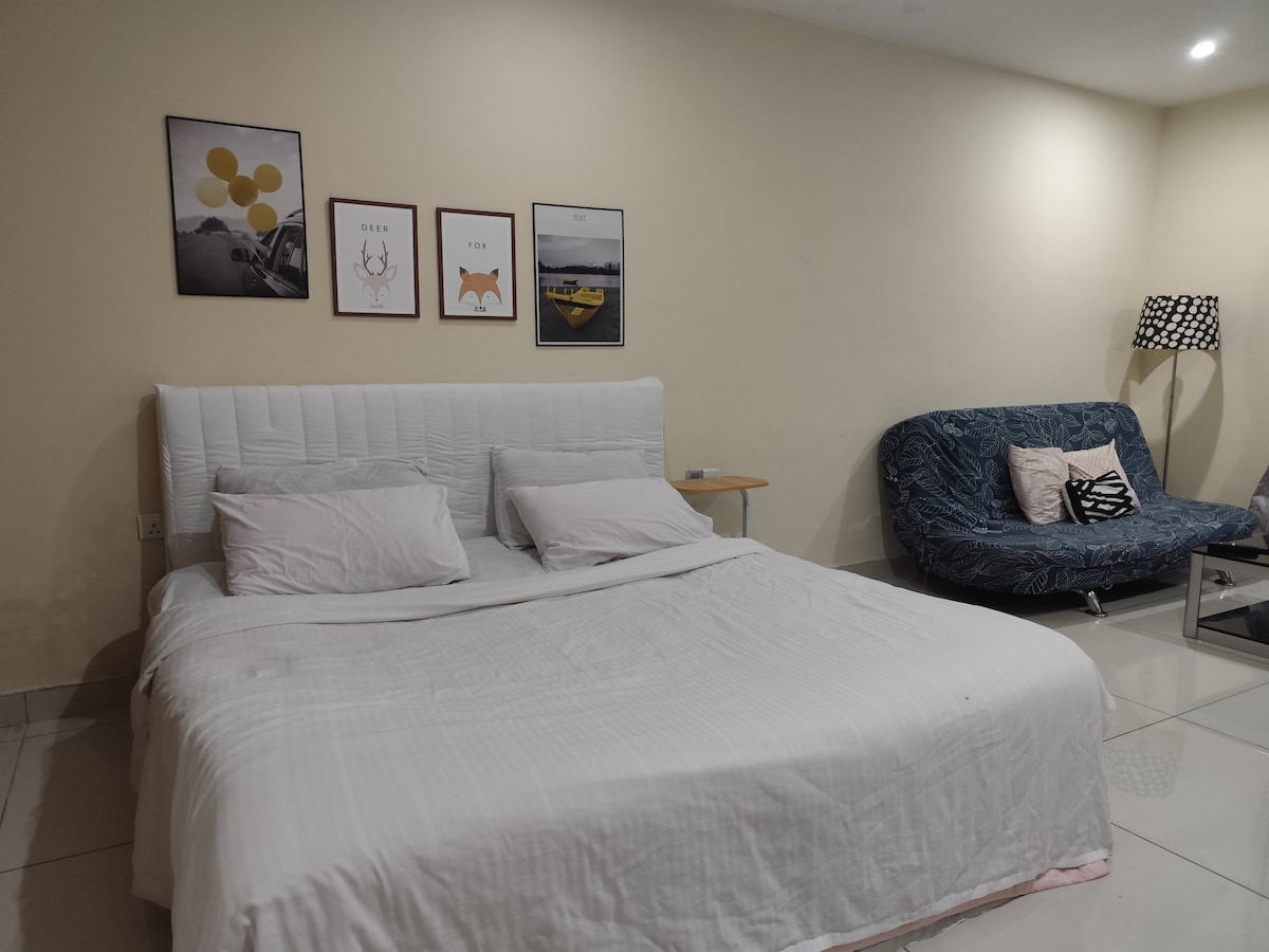 Bring your loved ones to this cozy, centrally located stay of Johor Bahru—just steps from KSL Mall! Perfect for families, with easy access to shops, food, and the lively Monday night market. Our brand-new dual-key condo at Space Residency (Studio + 2 Bedrooms) Master bedroom - 1 King attached with bathroom 1st bedroom - 1 Queen attached with bathroom 2nd bedroom - 1 Single 5 futon beds 1 Common bathroom Make yourself at home and enjoy relaxing, worry free stay right in the heart of JBu