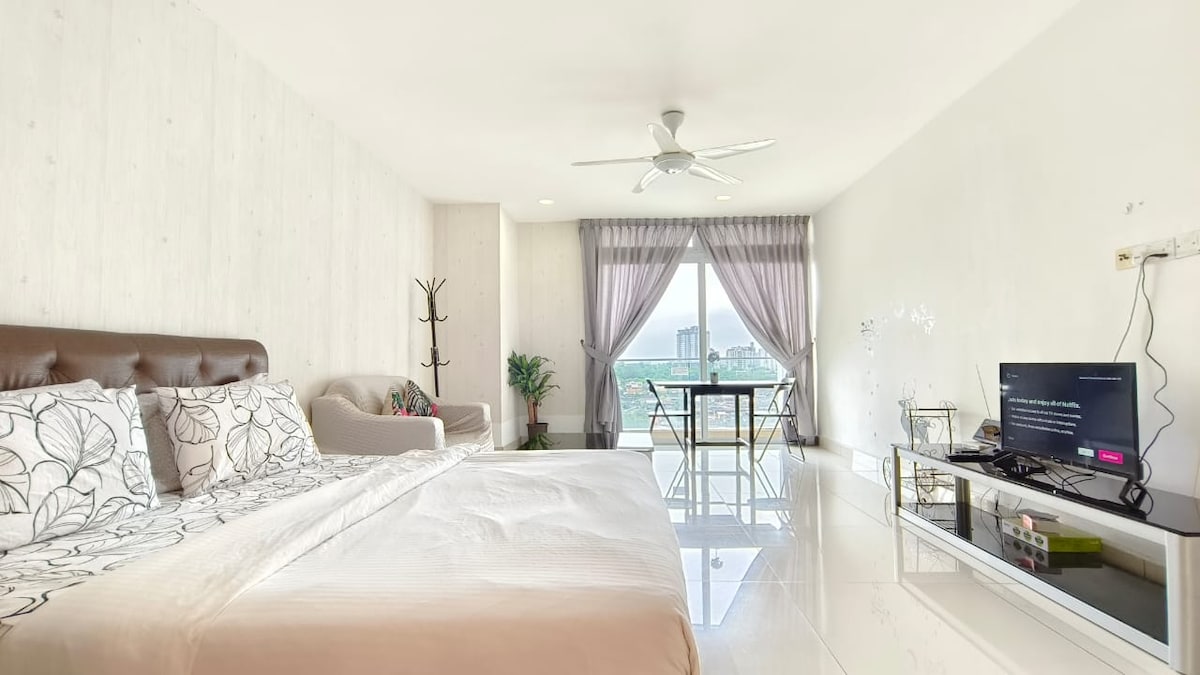 Twin Galaxy Residence! Բարի գալուստ մեր ընդարձակ/կանաչ և հարմարավետ ստուդիա ՝ քաղաքի զարմանահրաշ տեսարանով❤️, որը կատարյալ է զույգի, փոքր ընտանիքների, բիզնես ուղևորի/զբոսաշրջիկի համար 2/3 Pax - ի համար: Մեր հարկաբաժինը գտնվում է Ջոհոր Բահրու քաղաքի սրտում, տարածքը շրջապատված է F&B ռեստորանի բազմազանությամբ, ընտանեկան սպա/մերսման կենտրոնով, հարմարավետ խանութով, գիշերային կյանքով և այլն: Եկեք վայելելու ^^ Տունը կահավորված է 1xqueen չափի մահճակալով, բազմոցով (նաև թախտով), հատուկ աշխատանքային տարածքով և ամենօրյա հիմնական պարագաներով խոհանոցով:)