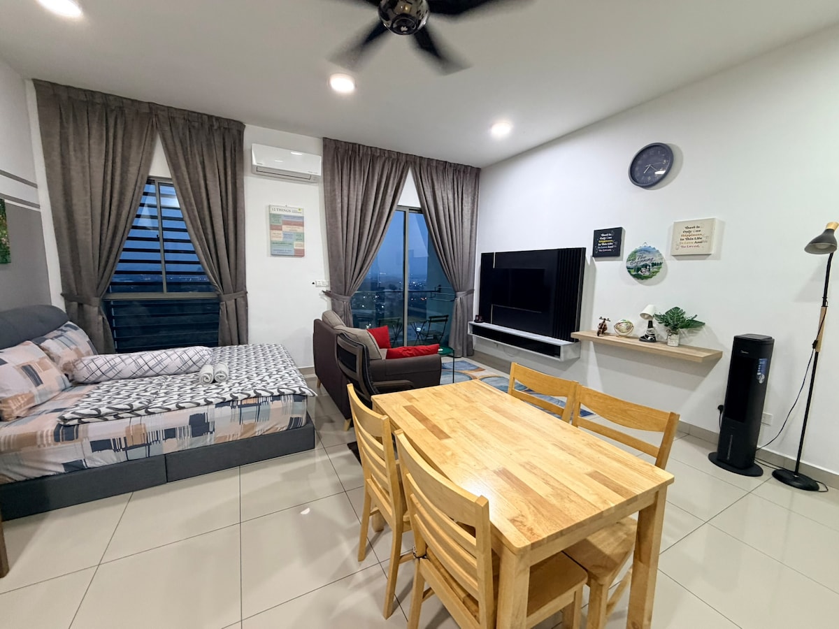 Իմ ամբողջովին կահավորված 510 քառ. մետր մակերեսով ստուդիան գտնվում է վերևի հարկում ՝ հագեցած սմարթ տան համակարգով: Դուք կարող եք դիտել cyberjaya & putrajaya իմ հարկաբաժնից: Լրացուցիչ զեղչ 2 գիշեր և ավելի երկար տևողությամբ ամրագրման համար ։ Մոտակա վայրեր. - քայլելու հեռավորություն դեպի Շաֆսբերիի հրապարակ ՝ սննդի, բանկային և մթերքների համար: - 6 կմ դեպի ERL Putrajaya/Cyberjaya կայարան: - 2.4կմ դեպի Դ'Պուլզե առևտրի կենտրոն: - IOI CITY Mall - ից 11կմ հեռավորության վրա - 35 ԿՄ դեպի ԿԼ. - 26 կմ դեպի KLIA: Լրացուցիչ հարմարություններ. - Անսահմանափակ 300 մբիթ/վ մանրաթելային լայնաշերտ ինտերնետ - Netflix