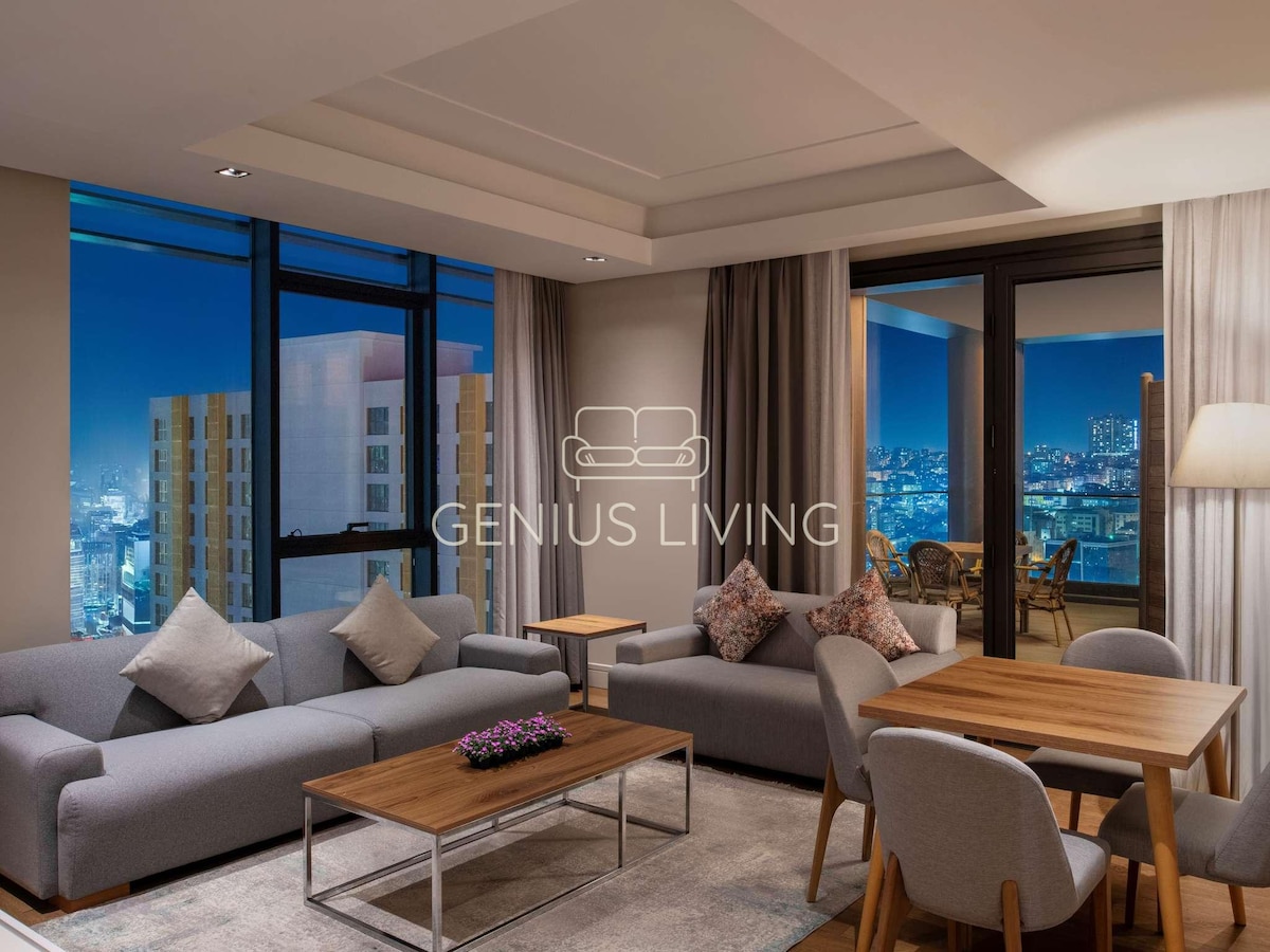 Welcome to this modern 1-bedroom apartment at, located in the vibrant Güneşli / Basin Ekspres area. 🌿This stylish apartment offers spacious living with a fully equipped kitchen, access to wellness facilities including an indoor pool, spa, sauna, and fitness center, and comes with daily free housekeeping service. We wish you a pleasant stay! ✨