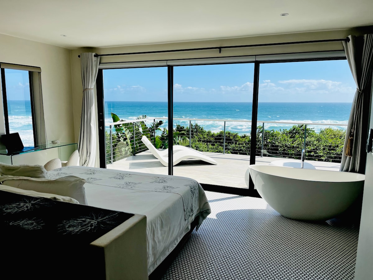 Wake to panoramic ocean views in a serene eco-luxury studio for romance, retreat, or remote work. The Sugar Suite is a private coastal sanctuary perched above the beach, featuring a king bed, kitchenette, soaking tub, shower, ocean-view deck, dedicated workspace with fast WiFi. Bright natural light, plugpoints on both sides of desk. Walk to cafés and restaurants. Optional extras: in-room massage or stocked fridge. A tranquil haven for rest, focus, connection. Couples, digital nomads. 🏝️