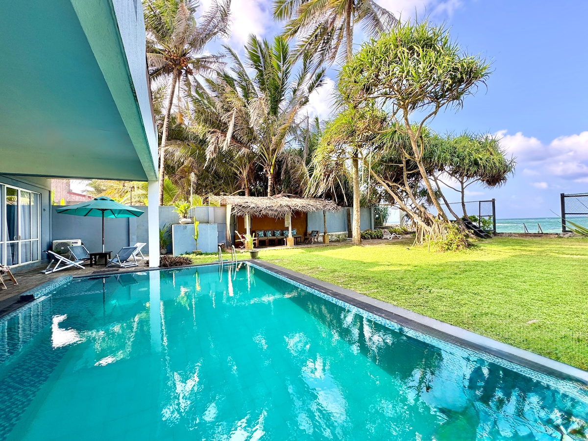 Զարմանալի վիլլա պարտեզով, որտեղից բացվում է հանգիստ ավազոտ լողափ ՝ Ամբալանգոդայի մոտ ։ Անվճար A/C, Wi - Fi, ֆիլտրված ջուր և նախաճաշ մրգերով, ձվով, տոստով և տնական ջեմով: Մոտակայքում գտնվող ծառայությունների տանը ապրող շեֆ - խոհարարն ու տնային կենդանին սպասում են ձեզ ։ Մեծ մահճակալներ ՝ բարձրորակ ներքնակներով և սպիտակեղենով: Զեն ժամանակակից դիզայնով, բայց հնաոճ պատուհաններով և դռներով, հարթ բետոնե հատակով և կահավորանքի էկլեկտիկ խառնուրդով ։ Անեզր լողավազանից բացվում են հիասքանչ տեսարաններ դեպի լողափ և օվկիանոս ։