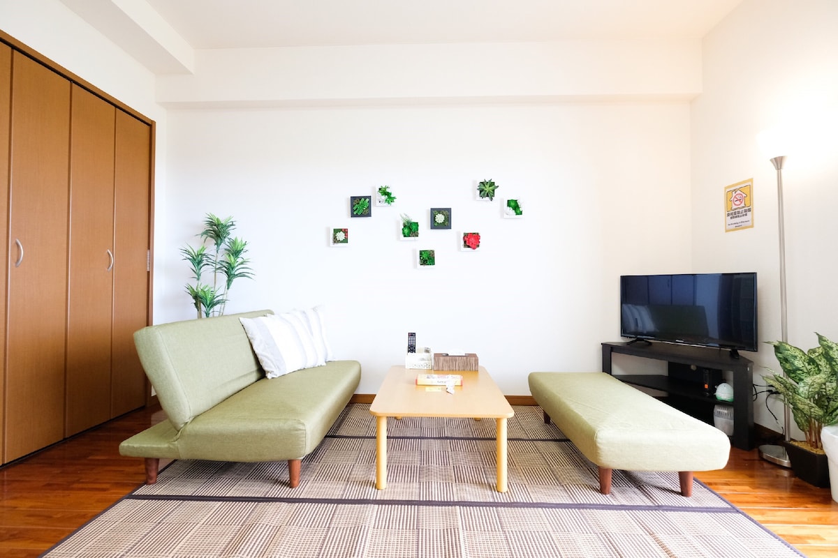 ・国際通り、波の上ビーチ、モノレール旭橋駅が徒歩圏内 ・2023年に室内フルリノベーションを施したの清潔感のあるお部屋です! ・Wi-Fi完備 ・徒歩1分圏内に有料駐車場有り 多数の飲食店やコンビニ、スーパーマーケットもあり、便利です! お友達や、ご家族でぜひご利用ください。 テレビ・エアコン・洗濯機・乾燥機などの生活家電や、冷蔵庫・電子レンジ・ケトルなどの生活用品も揃えております。 キッチン及び、調理器具のご用意はありません。