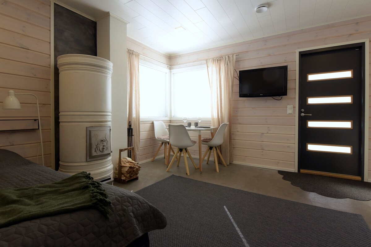 Խաղաղորեն գտնվում է Ալպյան տնակում, հիմնական տունը գտնվում է 2 - րդ հարկում: Ներքևում հարմարավետ 35մ2 մակերեսով ստուդիա է, որն ունի սեփական մուտք և ընդարձակ ավտոկայանատեղի, որից կարող են օգտվել հյուրերը ։ Տնակի գտնվելու վայրը գտնվում է Levi Fell - ի և Kätkä Fell - ի միջև, իսկ ստուդիայից բացվող տեսարանը ՝ Kätkä Fell - ի ուղղությամբ: Ձեր տանտիրուհիներն են Տարյան և Սքոթը, և մենք ապրում ենք վերևներում և ուրախ ենք օգնել ձեզ ցանկացած հարցում և ցանկացած հարցով: Տիրապետում ենք անգլերեն և ֆիններեն: