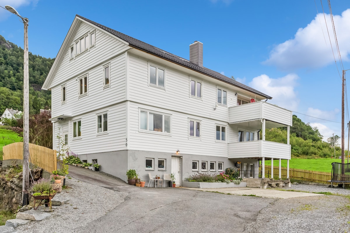 Կենտրոնին մոտ, Հարդանգերֆյորդից և Ֆոլգեֆոնից բացվող գեղեցիկ տեսարաններ, արևոտ, հանգիստ բնակելի տարածք, լողափին մոտ, Հարմարություններ ՝ Հարդանգերբադետ,խանութներ, սրճարաններ, ռեստորան: Արվեստի տուն Kabuso և թանգարան Ingebrikt Vik. Cidersmaking Spilde, Ribb on Hardangerfjord. Ձմեռային ժամանակը ՝ 10 րոպե մեքենայով մինչև Սյուզետե լեռնադահուկային հանգստավայր, մոտ 25 րոպե մինչև Ֆուրեդալեն և Էյկեդալեն ալպիական հանգստավայր ։
