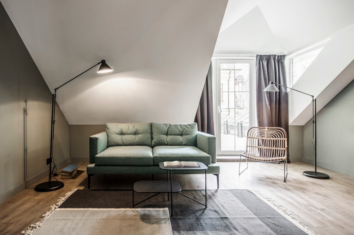 Suit room з балконом на центральну вулицю місті та Ботанічний сад. Витончений інтер'єр, телевізор із плоским екраном, сейф, індивідуальна система клімат контролю, швидкісний інтернет, ортопедичний матрац. В апартаментах ванна кімната укомплектована феном та косметичними засобами.