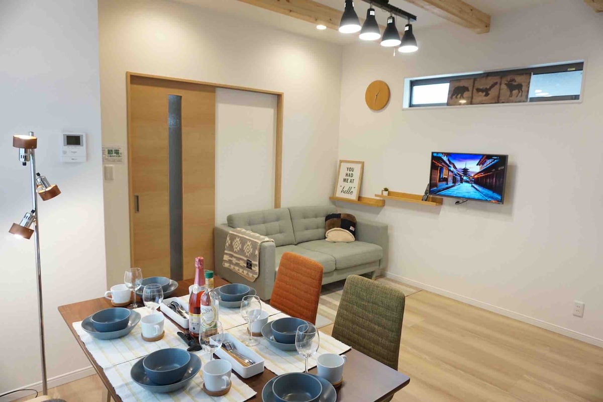 HIBI タウンハウス現代設備京町家貸切、嵐山金閣寺バス停2分 JR円町駅歩 11分近銭湯 Netflix