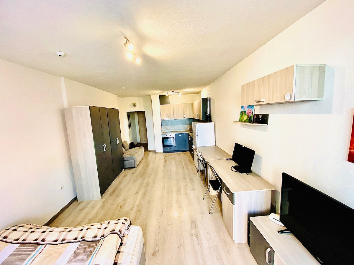 Մինիմալիստական ստուդիա նոր շենքում , լիովին կահավորված, խոհանոց, որտեղ կա այն ամենը, ինչ ձեզ հարկավոր է, Studentski Grad - ում: Բնակարանն ունի նաև մեծ կտուր ։ Այս վայրը հարմար է միայնակ ճանապարհորդողների կամ զույգերի համար ։ Հատուկ կարիքներով անձանց համար հարմարությունները նախատեսված են վերելակների համար նախատեսված ընդարձակ սենյակներով ։ Քաղաքի կենտրոնից 10 րոպե հեռավորության վրա կլինեք նաև Վիտոշա լեռը ։ Տարածքն իսկապես շփվող է մեքենա ունեցող կամ չունեցող մարդկանց համար:)