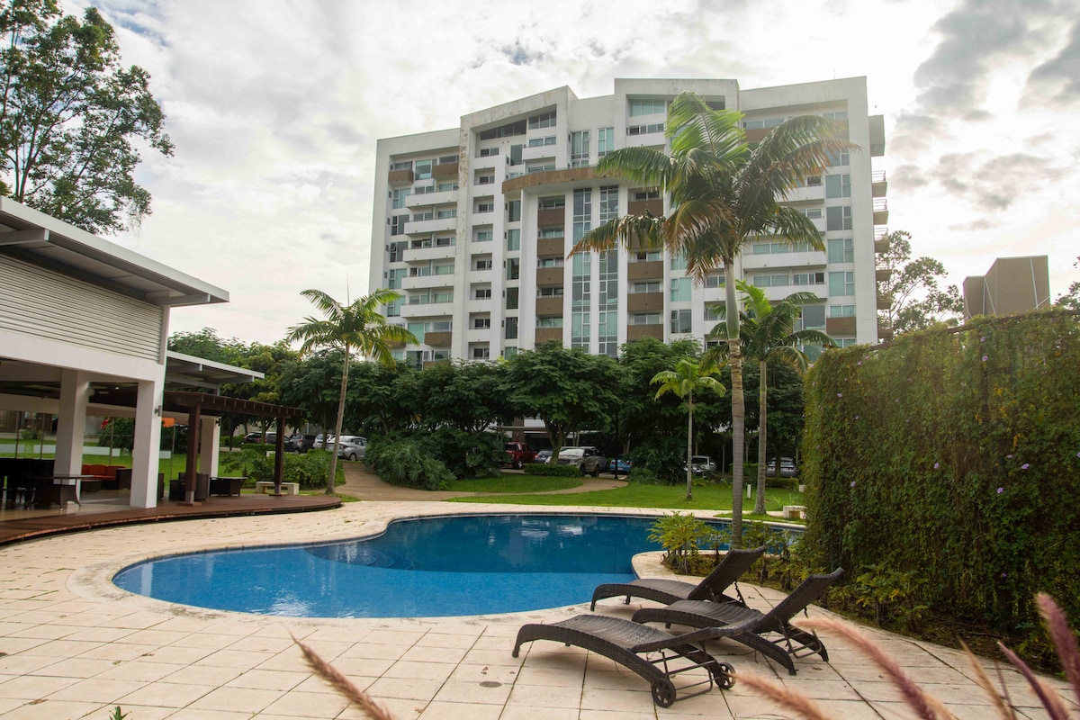 Luxury Apartment with perfect and convenient location, specially designed for your confort and security. - Gated 24/7 security entrance apartment complex - Only 10 min away from SJO international airport - A mall plaza in promises - Free parking spot - Dog's park - 2 Pools and 2 jacuzzies - 5 min from National convention center - Nightlife, bars, restaurants - Only minutes from the 3 majors business center in the country - 3 Shopping malls close by Many more options right there for you!