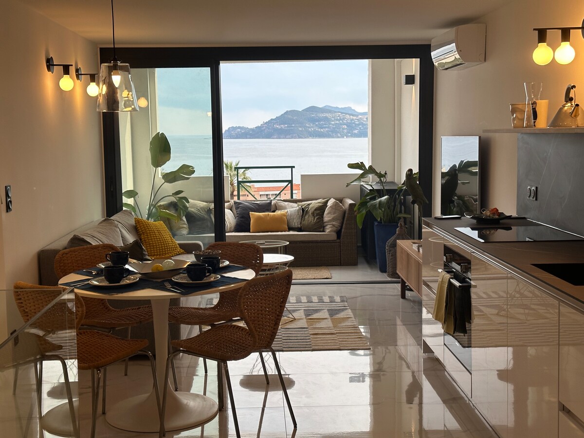 Idéalement situé en bord de mer vous vous détendrez instantanément en admirant la vue imprenable sur la mer, l'Esterel. En bas de la résidence, vous serez les pieds dans l'eau sur la plage de sable fin de Bocca-cabana. Entièrement rénové, spacieux, d'un design moderne et raffiné, climatisé, wifi-fibre, couchage 160 cm, l'appartement est tout équipé. Cadeaux de bienvenue vous attendent. Espace de travail de rêve pour les congressistes ou pour du télétravail. Parking privé, sécurisé , tennis.