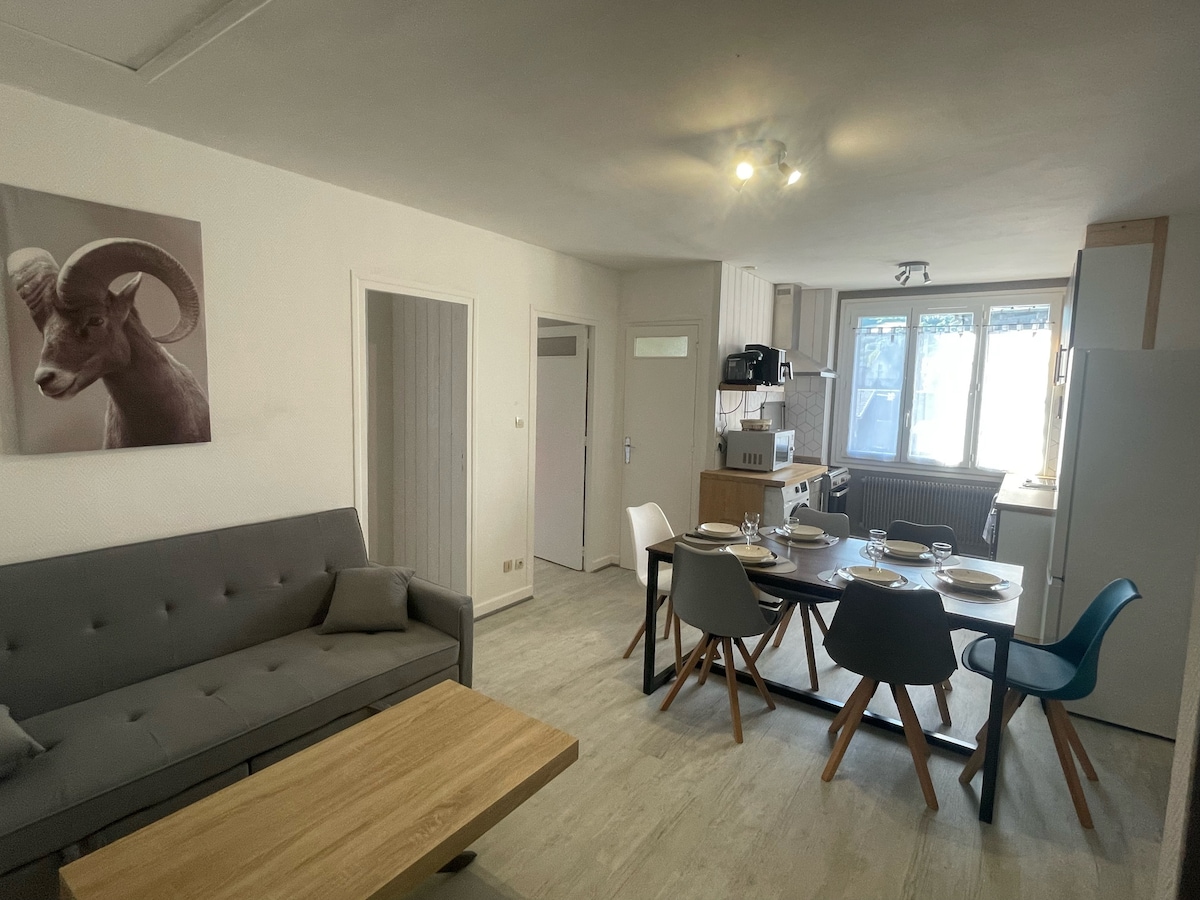Niché au premier étage d'une résidence paisible en plein centre-ville, cet espace offre le parfait équilibre entre tranquillité et commodité. Avec ses 3 chambres, dont 1 cabine et 1 avec salle d'eau privative. Une seconde salle d'eau avec wc et un WC séparé viendront s’ajouter pour votre confort. L'entrée mène à une vaste pièce de vie baignée de lumière et agrémentée d'une cuisine équipée . Récemment rénové, ce cocon élégant promet un séjour aussi confortable que charmant . Tarif cure .