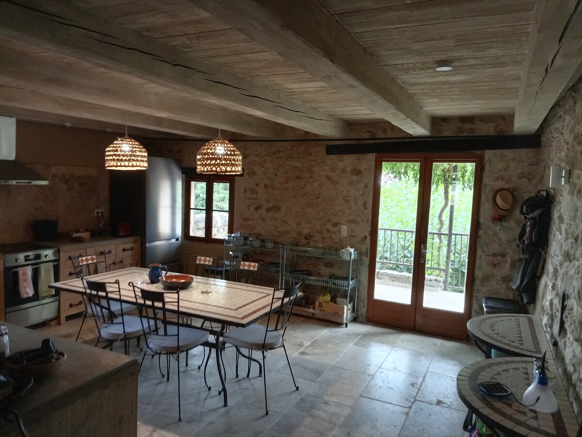 18 - րդ դարի քարե ագարակը գտնվում է փոքրիկ գյուղական գյուղում, որը շրջապատված է խաղողի այգիներով, պադոկներով, դաշտերով և անտառներով, Ուզեսից 14 կմ հեռավորության վրա ՝ Սեվենսի լեռների, Կամարգուի և Միջերկրական ծովի միջև ։ Այն ունի փոքրիկ անուշաբույր այգի, լողավազան և կտուր ՝ մանղալով, և տեսարան դեպի կայրիգի և լեռնագագաթները ։ Այն ունի երկու հարկանի, առաջինը ՝ մեծ խոհանոցով (բոլոր հարմարություններով) և հյուրասենյակով (+ հեռուստացույց + Wi - Fi), իսկ երկրորդը ՝ 3 ննջասենյակով, լոգասենյակով և ուսումնասիրությամբ ։