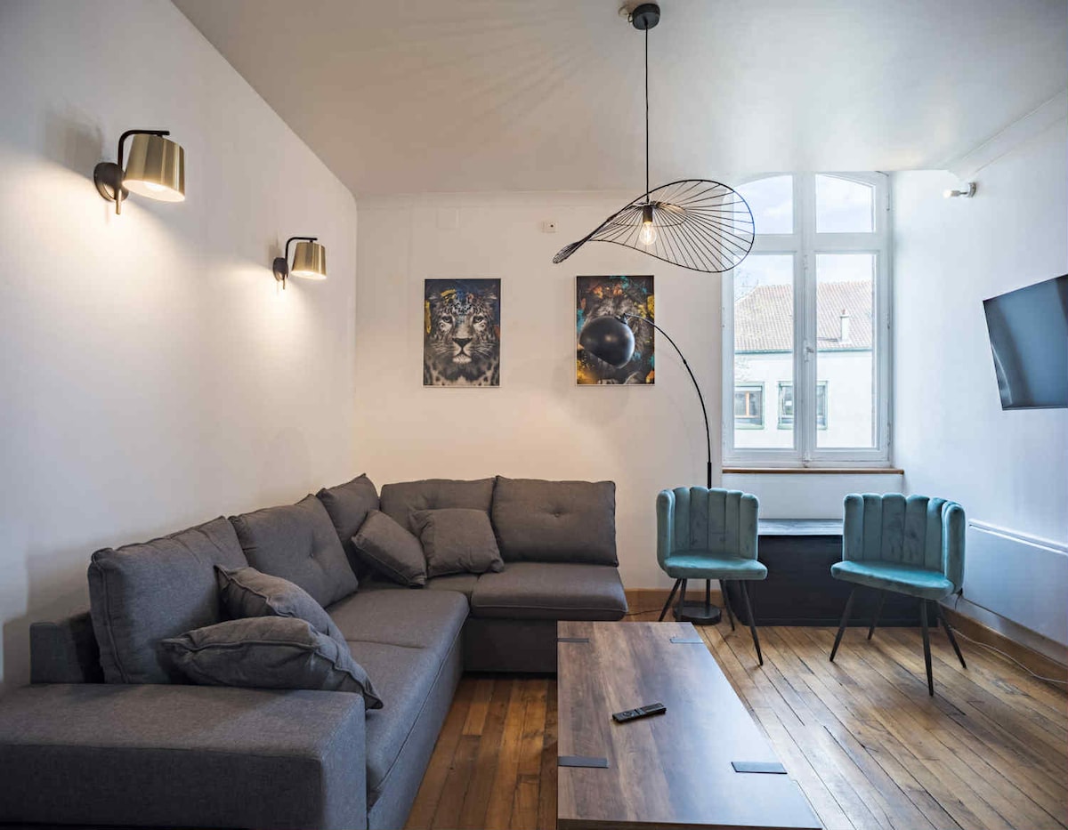 Բացահայտեք Տրոյես քաղաքը Lucie&Jémie - ում: 87 մ2 մակերեսով մեծ բնակարան ՝ մեծ հմայքով, քաղաքի կենտրոնին մոտ, հարմարություններ, կայանատեղի, ցուցահանդեսային կենտրոն, սուպերմարկետ, հացաբուլկեղենի գործարան և այլն: Հարմարավետ ընդարձակ բնակարան քաղաքի կենտրոնում ՝ Տրոյեսում ։ Կենտրոնից 5 րոպե ոտքով, լավ կահավորված խոհանոց, հանգիստ շենք ։ 3 ննջասենյակները կատարյալ են բոլոր ընտանեկան այցերի համար ։