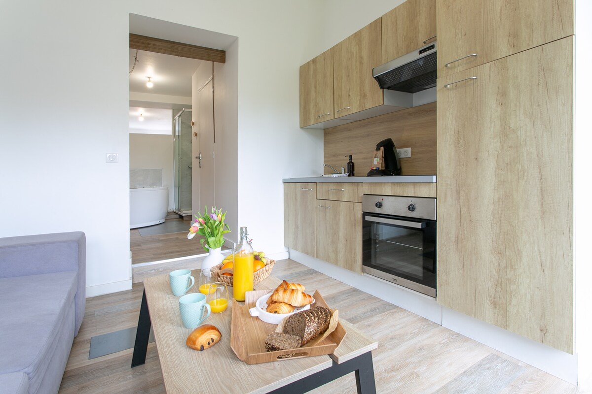 28 մ2 մակերեսով ստուդիան բաղկացած է իսկական անկողնային պարագաներով բազմոցից, լոգասենյակից, առանձին զուգարանից և առանձին գերհագեցած խոհանոցից ( ջեռոց, միկրոալիքային վառարան, ինդուկցիոն գազօջախ, սառցարանի սառնարան, թեյնիկ, էսպրեսո մեքենա, սրճեփ և այլն )։ Բացառիկ տեսարան դեպի ալիքը, մեծ լողափը և օվկիանոսը ։ Բացի այդ, կունենաք հեռուստացույց, մանրաթել, 2 հեծանիվ, լողափի աթոռներ Հնարավոր հաշիվ - ապրանքագրեր ՝ վերականգնվող ԱԱՀ - ով