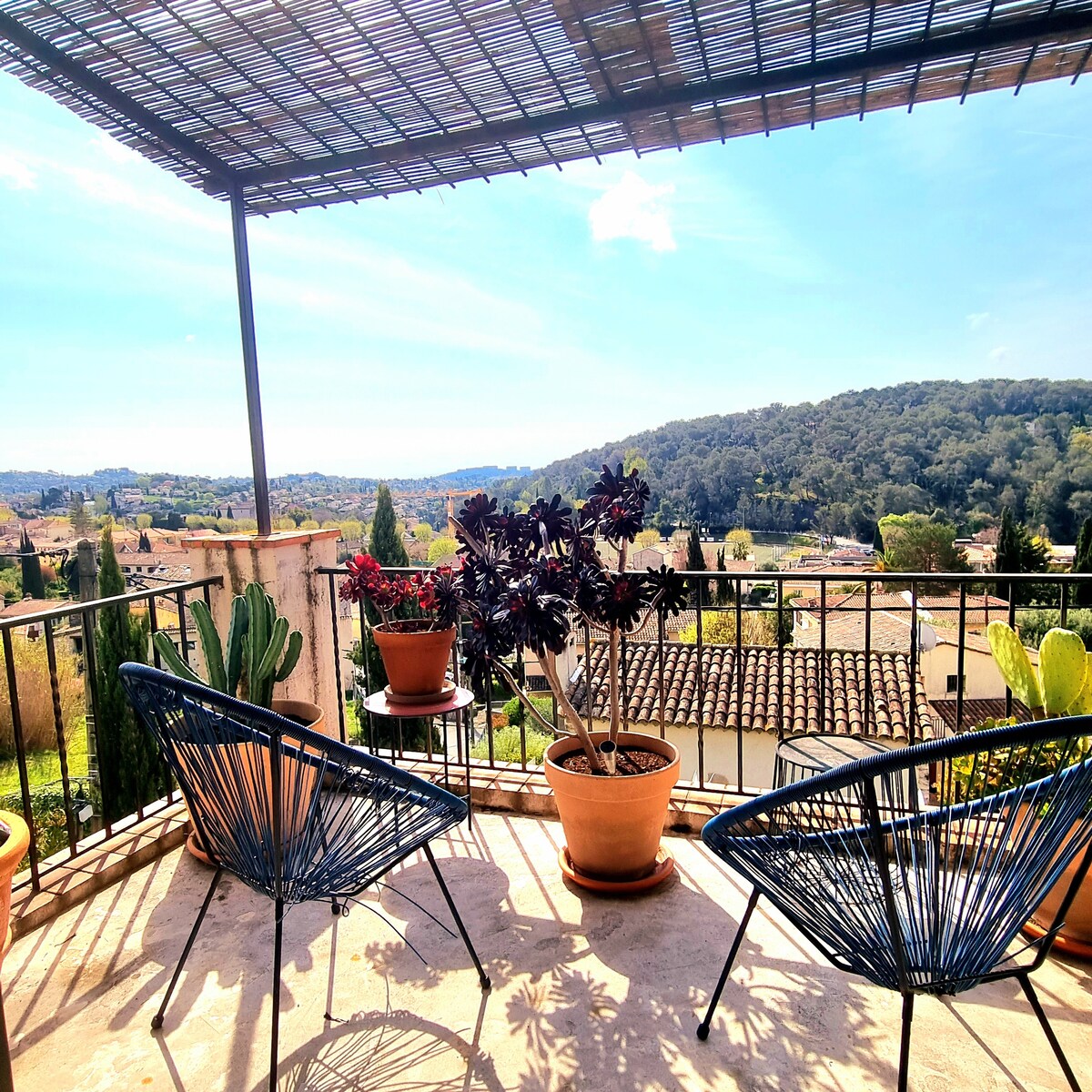 🌿 Հարմարավետություն և արդիականություն կանաչ և խաղաղ միջավայրում ՝ իդեալական հանգստանալու և այդ ամենից կտրվելու համար ։ ✨ Կոկիկ ձևավորումը ձեզ կտա հաճելի և ոճային այցի փորձառություն ։ Դուք կվայելեք արևոտ կահավորված տեռասը, որը կատարյալ է ձեր կերակուրները լիարժեք հանգիստ վայելելու համար: 🕊️ Թարմացնող և խաղաղ վայր Նիցցայի օդանավակայանից ընդամենը 15 րոպե հեռավորության վրա և միջոցառումներ ու այցելելու վայրեր (Սուրբ Պոլ դե Վենսե, Կանն Մոնակո, Էզե, Մենտոն ...) Ջակուզին բաց է ապրիլից մինչև դեկտեմբեր