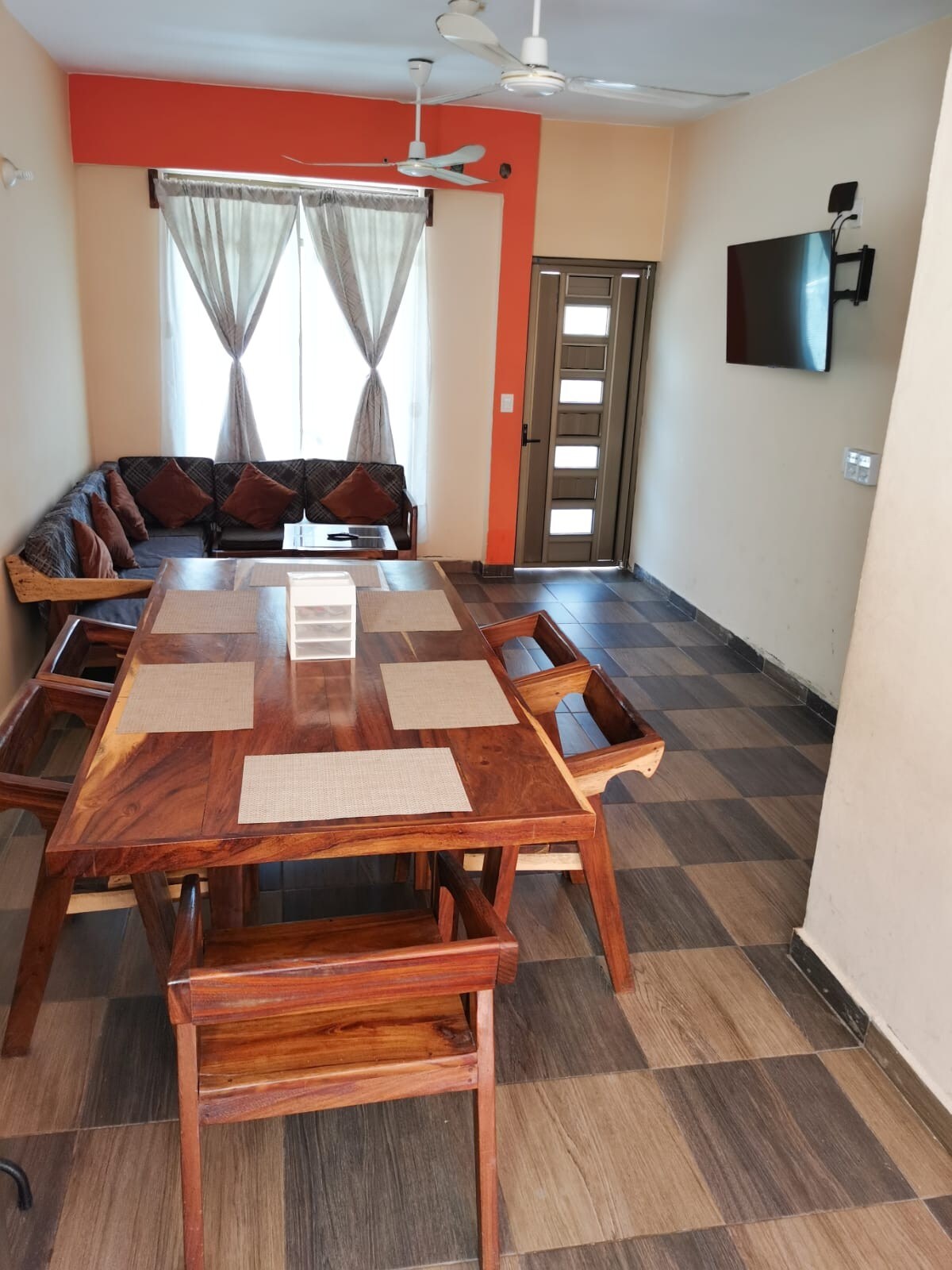 Son dos departamentos uno a lado del otro entran hasta 16 personas si llevan niños, tres sofacamas extras, cada uno con entrada independiente, cada uno con un cajon de estacionamiento, c/u respectiva sala cocina y comedor juntos hacen cuatro recamaras pensado para familias grandes tenemos la opcion de hasta tres departamentos pero por politicas de la aplicación el maximo permitido de huespedes son 16 físicamente podemos alojar hasta 24 huespedes cómodamente ya se cuenta con aire acondicionado