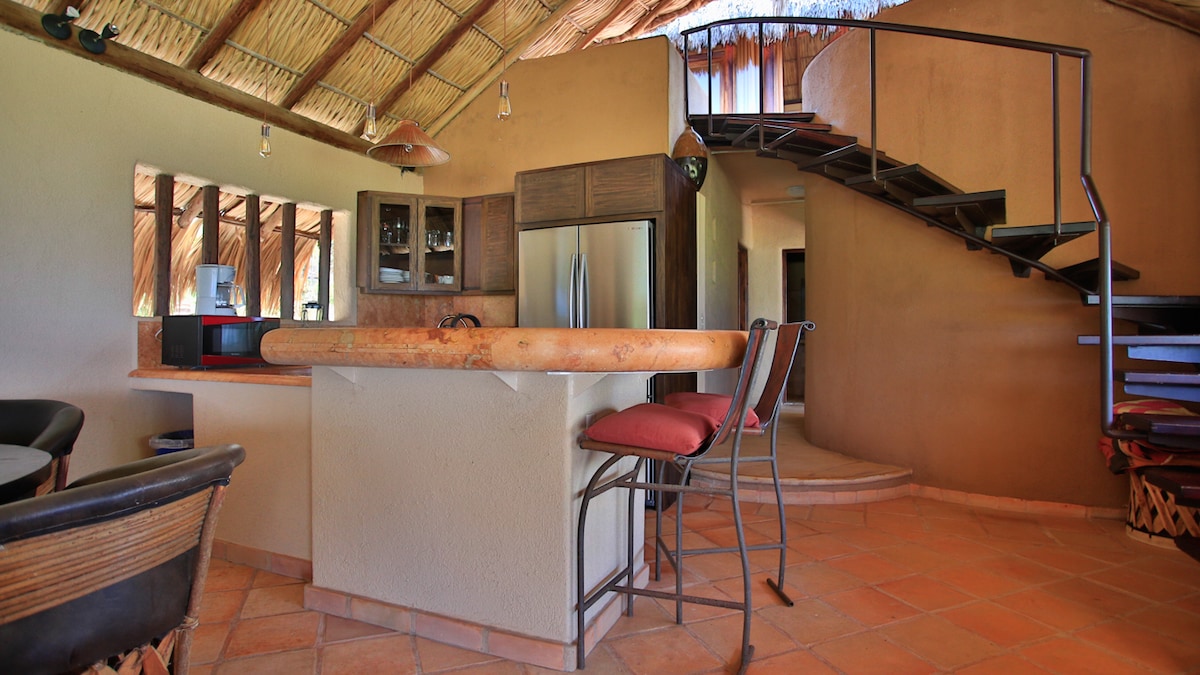 Արևադարձային ոճի Պալապա, բացօթյա տարածք, որն ապրում է ընդարձակ խաղաղօվկիանոսյան, Կղզու, Օվկիանոսի և Մթն. տեսարանների վերևում ։ Քուն 6. Առանձին պո ՛ ւյս ։ Ժամանակակից հարմարավետություն և հարմարություններ ։ AC, Wi - Fi, Maid Service, Access to Celeste resort Beach club facilities, and beautiful bay less than a 10min Hiking down the road.. Nap in the Hammock cliffside or enjoy the sea breeze under the cool shade of the palapa by the pool. Լիովին կահավորված խոհանոց ՝ Լա Կրուսիտայում կամ Սանտա Կրուսում գտնվող ռեստորանները սնվելու կամ վայելելու համար: Ընդամենը 10 րոպե հեռավորության վրա ։