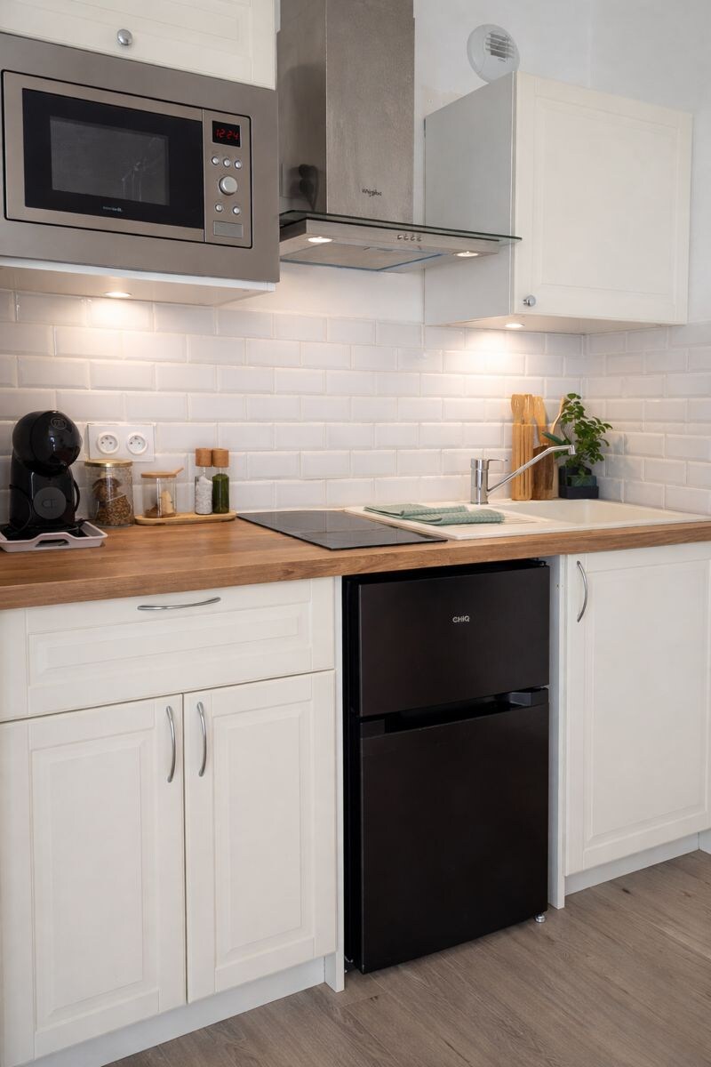 Շքեղ ստուդիա, 27 քմ, 3 - րդ հարկ ՝ վերելակով ։ Շատ ֆունկցիոնալ և շատ պայծառ ։ Հանգիստ թաղամաս, 5 րոպե ոտքով, գնումներ և քաղաքի կենտրոն ։ Սպասարկվում է բազմաթիվ հասարակական տրանսպորտով (ավտոբուս, տրամվայ, գնացք )։ Իդեալական է 3 մեծահասակի կամ ընտանիքի համար ՝ 2 մեծահասակ և 1 երեխա ։ Պահարանի և զգեստապահարանի մուտք, լվացքի մեքենայով լոգասենյակ, հյուրասենյակ ՝ 2 հոգու համար նախատեսված թախտով և փոխարկելի բազկաթոռ (1 մահճակալ 107 x 193 )։ Լիովին կահավորված ժամանակակից խոհանոց ։ Ultra HD Smart TV, Wi - Fi, Netflix ։