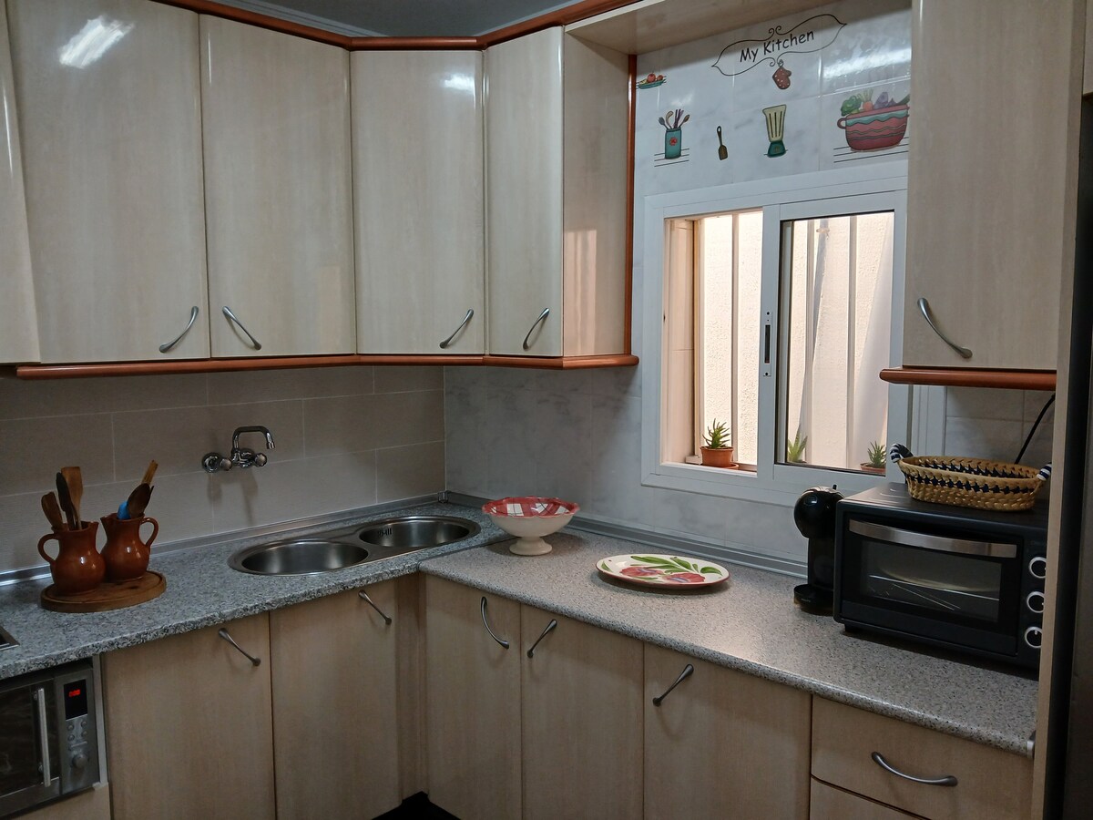 Fresh and bright apartment with a terrace, located in a quiet area in El Pozo de los Frailes, in the heart of Cabo de Gata-Níjar Natural Park. Just minutes away from San José and from the beaches of this amazing biosphere reserve. With a spacious bedroom with a queen-size bed, an open area with a fully equipped kitchen/dining room/ living room and a terrace with an extensible shade perfect to enjoy the amazing weather all year round. The house has no AC, but has ceiling and floor fans.