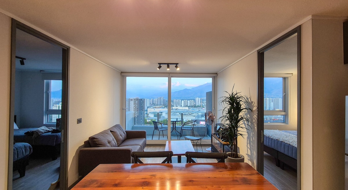 Վայելեք ժամանակակից, լուսավոր և հարմարավետ տարածք՝ պատշգամբով և լեռնաշղթայի բաց տեսարանով։ Բնակարանը հարմարավետ տարածքներ, ջերմ դիզայն և հանգստի կամ խաղաղ աշխատանքի համար անհրաժեշտ ամեն ինչ է առաջարկում։ Գտնվում է մետրոյից կես թաղամաս հեռավորության վրա (4-րդ և 5-րդ գծեր), այն թույլ է տալիս ուղիղ կապ հաստատել պատմական կենտրոնի (Plaza de Armas), Costanera Center-ի և Viña Concha y Toro-ի հետ։ Մալպլազա Վեսպուչիոյից (H&M, Zara, Falabella և այլն), Դավիլա կլինիկայից, Red Salud-ից, սուպերմարկետներից և բազմաթիվ սննդի տարբերակներից քայլելու հեռավորության վրա։