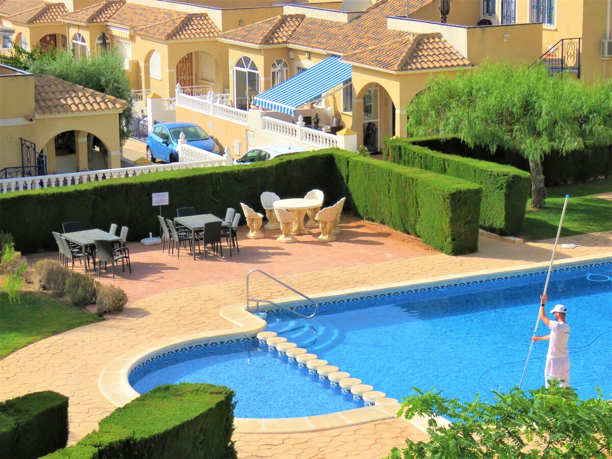 Verhuurlicentie: CV-VUT0517688-A Charmant vakantiehuis in Orihuela Costa met meerdere privébuitenruimtes en een gedeeld zwembad. Ontspan op het zonnige dakterras of in de sfeervolle tuin. Binnen vind je een comfortabele woonkamer, een volledig uitgeruste keuken en twee gezellige slaapkamers. Perfect gelegen voor een zorgeloze vakantie vol zon en ontspanning!