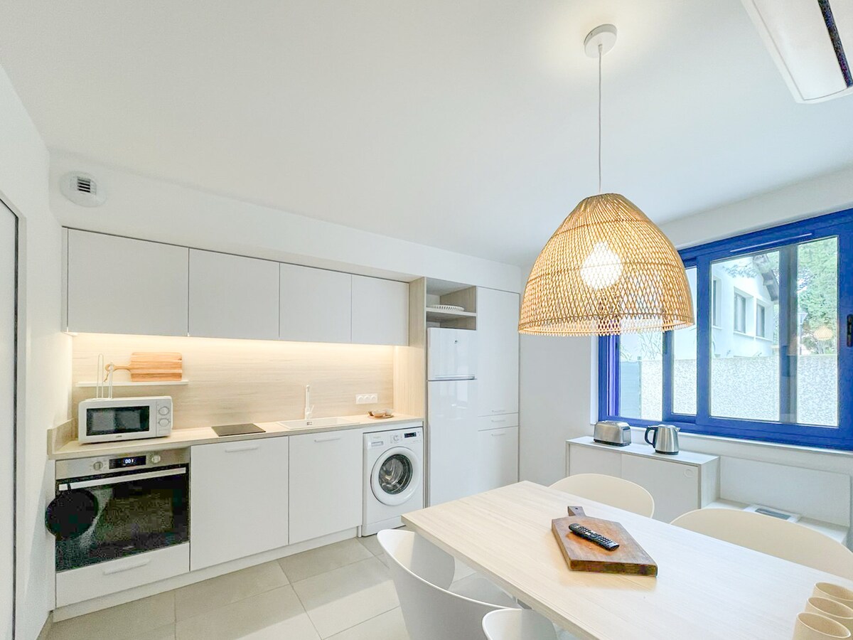 Petite villa dans résidence avec piscine l'été. Elle se compose au RDC d'une pièce principale avec une cuisine aménagée et un petit salon d'accueil , d'une chambre avec un lit deux personnes de 120 cm , d'un dressing buanderie et d'une salle de bain - WC. A l'étage un salon avec TV , canapé et secrétaire pour télétravail. Le logement dispose d'internet (livebox et tv), lave-linge, lave-vaisselle. Au calme, le logement bénéficie d'un extérieur à l'abri des regards avec une exposition sud.