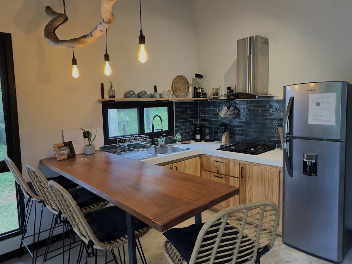Disfruta de una experiencia con estilo en este alojamiento de encanto, ideal para pareja : acogedor, luminoso y actual . Ubicación fantastica en área privada y a unos paso del centro, playas y lugares de interés. Confortable para largas estadías y teletrabajo. Wifi gratuito, A/C. Kitchenette. Amplia terraza de madera rodeada de exuberante naturaleza, excelente para practicar Yoga y relajarse.