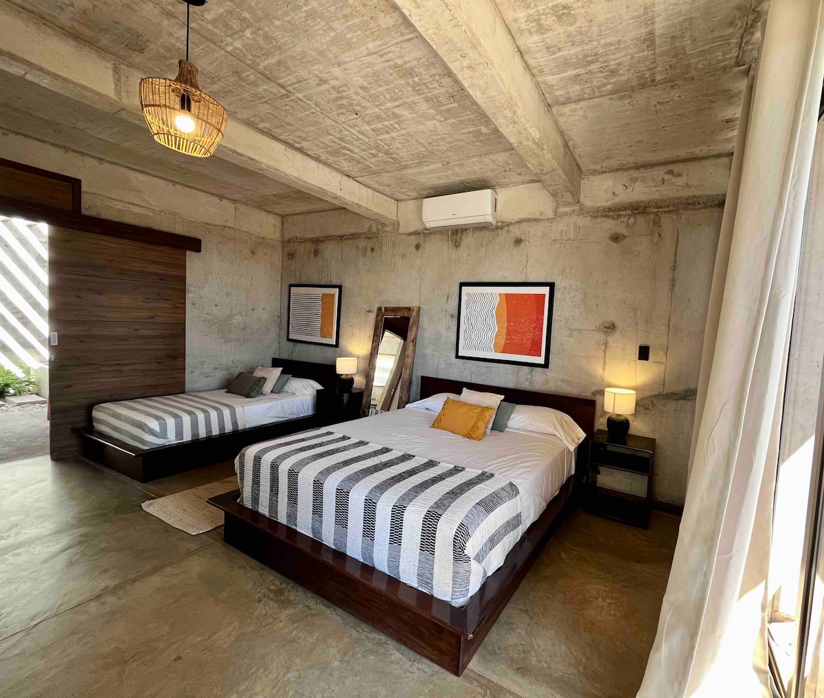 Imagine waking up to a coastal experience right in front of you, a perfect contrast between the sky, the mountains, and the sea. Enjoy a relaxing stay in our cozy loft. This modern and comfortable space is designed to provide you with a pleasant experience just minutes from the beach. The loft comes with an equipped kitchen and a balcony with beautiful views. It’s close to the best restaurants, shopping centers, and just 4 minutes from Surf City. It’s the perfect place for a relaxing vacation!