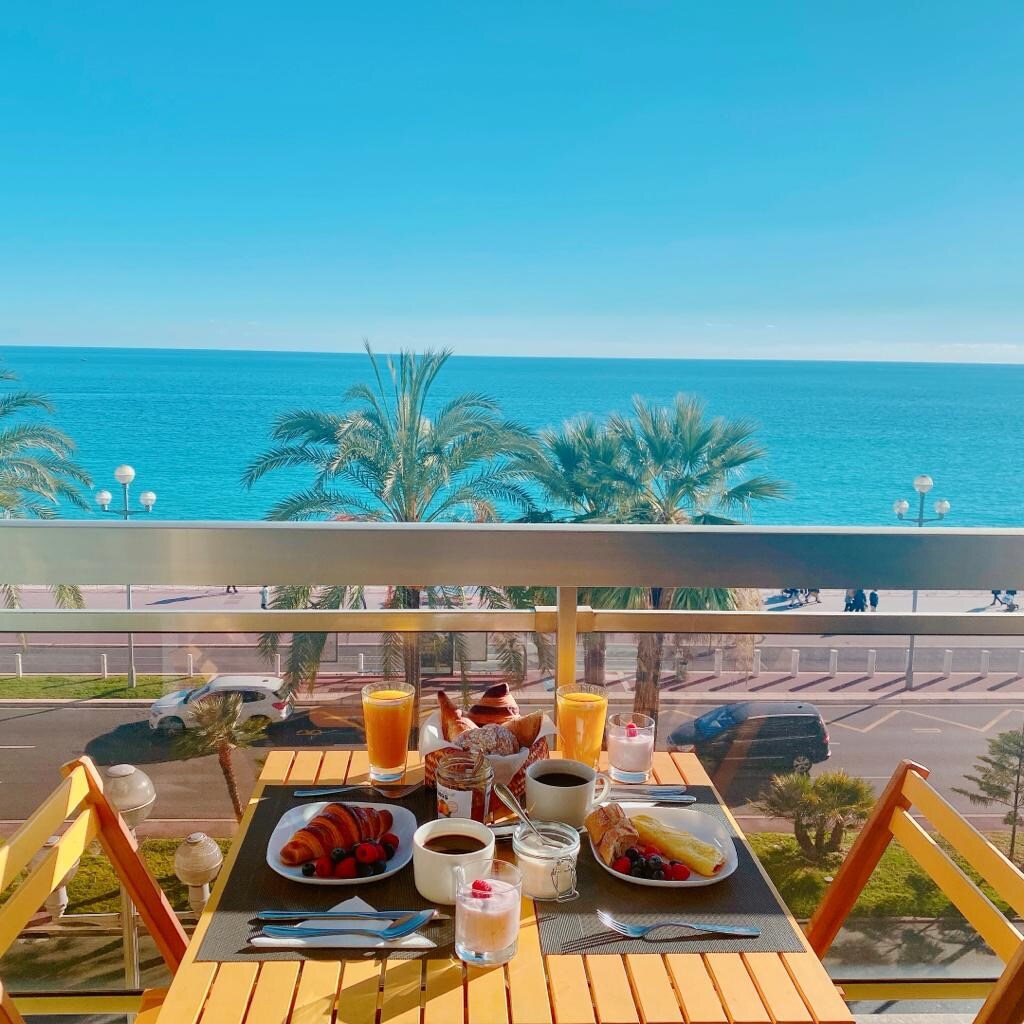 Այս բացառիկ բնակարանը գտնվում է Promenade des Anglais - ի բազմաբնակարան շենքի 4 - րդ հարկում, այսինքն ՝ լողափից ընդամենը մի քանի քայլ հեռավորության վրա ։ Բնակարանն ունի մեծ հյուրասենյակ կամ ճաշասենյակ ՝ բաց խոհանոցով, ինչպես նաև 2 ննջասենյակով, 2 լոգասենյակով և մեծ կտուրով ։ Կահավորանքը նորաձև է ։ Ընդարձակ պատշգամբը ուղղված է դեպի ծովը և ամբողջ օրը արև ունի (գրեթե )։ Քաղաքի կենտրոնը 15 րոպե ոտքով կամ 5 րոպե տրամվայով է: